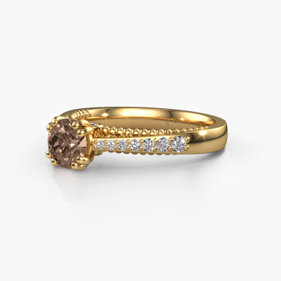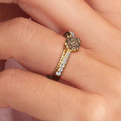 Der oben gezeigte Gold Verlobungsring wird Rozella genannt. Es ist ein Pavé Solitär Ring, da er einen zentralen Edelstein und ein Band mit Pavé-Fassung hat. Der einzigartige Pavé Solitär Verlobungsring ist in der Kombination 14 Karat Gold mit Gold und ist mit einem rund 0.65 crt Braun Diamant-Mittelstein besetzt und das Band hat eine Pavé-Fassung mit Lab grown Diamant. Jedes Schmuckstück lässt Ihren Finger erstrahlen. Ihr Ring ist mit Liebe von unseren Goldschmieden handgefertigt. Um den zentralen Stein noch mehr zu betonen, hat das Band eine Pavé-Fassung mit weiteren Braun Diamant. Durch die offenen Krappen kann das Licht aus mehreren Winkeln auf den Braun Diamant treffen und der Braun Diamant-Ring funkelt noch mehr. Das obere Foto zeigt die leidenschaftlich handgefertigten Details des Rings. Die hohe Positionierung der Mittelstein ist ein echter Blickfang. Der perfekte Verlobungsring für das Kronjuwel Ihres Lebens!Nachdem Sie Ihre Bestellung aufgegeben haben, beginnen unsere Goldschmiede mit dem kreativen Prozess der Herstellung Ihres Rozella Verlobungsring. Wir haben keine Lager. Das ist vorteilhaft, da diese Kosten nicht an Sie weitergegeben werden. Daher sind wir in der Lage, Schmuck zu außergewöhnlich niedrigen Preisen anzubieten.Unsere Designer und Goldschmiede arbeiten jeden Tag zusammen und versuchen, neue Schmuckstücke zu kreieren. Vielleicht haben Sie irgendwo einen schönen, einzigartige Verlobungsring gefunden, nach dem Ihr einzigartiger Ring gestaltet werden kann. Setzen Sie sich mit uns in Verbindung. Wir machen Ihnen ein Angebot, basierend auf einem fairen Preis/Leistungsverhältnis, das Sie begeistern wird.Um es einfacher zu machen, bieten wir eine kostenlose 30-tägige Rücksendung.