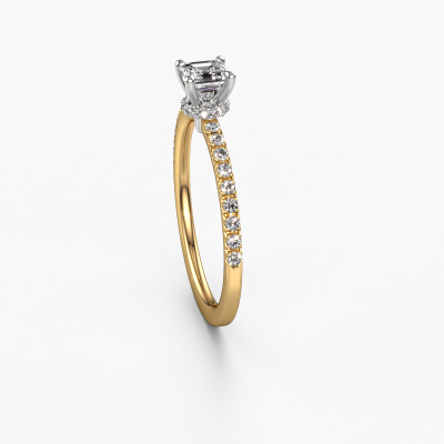 Der oben gezeigte Gold Verlobungsring wird Crystal ASSC 4 genannt. Es ist ein Pavé Solitär Ring, da er einen zentralen Edelstein und ein Band mit Pavé-Fassung hat. Der exklusive Pavé Solitär Verlobungsring ist in der Kombination 14 Karat Gold mit Weißgold und ist mit einem asscher 0.35 crt Diamant-Mittelstein besetzt und das Band hat eine Pavé-Fassung mit Diamanten. Jedes Schmuckstück wird hergestellt mit Leidenschaft und Liebe, von einem unserer Meister-Goldschmiede. Um den zentralen Stein noch mehr zu betonen, hat das Band eine Pavé-Fassung mit weiteren Diamant. Durch die offenen Krappen kann das Licht aus mehreren Winkeln auf den Diamant treffen und der Diamant-Ring funkelt noch mehr. Das obere Foto zeigt die leidenschaftlich handgefertigten Details des Rings. Die hohe Positionierung der Mittelstein ist ein echter Blickfang. Der perfekte Verlobungsring für das Kronjuwel Ihres Lebens!Durch die Kombination modernster Technik mit uralter Handwerkskunst können wir alle Verlobungsringe in unserem eigenen Studio anfertigen. Jedes Schmuckstück wird auf Anfrage gefertigt. Das ist vorteilhaft, weil wir Ihnen dadurch einen Preis anbieten können, den Sie nirgendwo anders finden.Unser Team fügt unserer Online-Kollektion täglich neue Designs hinzu. Unsere Designer und Goldschmiede arbeiten zusammen, um das beste Design zu kreieren. Wir bemühen uns, eine vielfältige Kollektion von Schmuckstücken anzubieten. Vielleicht haben Sie ein bestimmtes Design im Sinn. Eines, dass Sie irgendwo gesehen haben. Gerne geben wir Ihnen eine kostenlose Beratung. Wir machen Ihnen ein Angebot, basierend auf einem fairen Preis/Leistungsverhältnis, das Sie verblüffen wird.Um es einfacher zu machen, bieten wir eine kostenlose 30-tägige Rücksendung.
