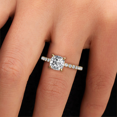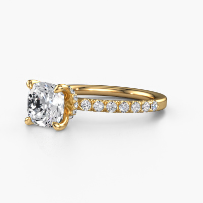 Der oben gezeigte Gold Verlobungsring wird Crystal CUS 4 genannt. Es ist ein Pavé Solitär Ring, da er einen zentralen Edelstein und ein Band mit Pavé-Fassung hat. Der schicke Pavé Solitär Verlobungsring ist in der Kombination 585 Gold mit Gold und ist mit einem cussion 2.00 crt Diamant-Mittelstein besetzt und das Band hat eine Pavé-Fassung mit Diamanten. Jedes Schmuckstück ist um Ihrem Finger Glanz zu verleihen. Jeder Ring wird von unseren Goldschmieden liebevoll von Hand gefertigt. Um den zentralen Stein noch mehr zu betonen, hat das Band eine Pavé-Fassung mit weiteren Diamant. Durch die offenen Krappen kann das Licht aus mehreren Winkeln auf den Diamant treffen und der Diamant-Ring funkelt noch mehr. Das obere Foto zeigt die leidenschaftlich handgefertigten Details des Rings. Die hohe Positionierung der Mittelstein ist ein echter Blickfang. Der perfekte Verlobungsring für das Kronjuwel Ihres Lebens!Mit unserer modernen Technik können wir Schmuckstücke von höchster Qualität mit größter Sorgfalt für Sie entwerfen und anpassen. Unsere Verlobungsringe sind immer um 30 Prozent günstiger als bei anderen Juwelieren. Wir fertigen Verlobungsringe auf Bestellung, also müssen wir keine großen Lager unterhalten. Wenn Sie ein bestimmtes Budget haben, beraten wir Sie gerne entsprechend.Haben Sie einen bestimmten Ring im Sinn? Eines, dass Sie irgendwo gesehen haben. Bitte zögern Sie nicht, uns zu sagen, was Sie wollen und wir werden Ihr Design in einen Einzigartigen Verlobungsring verwandeln. Sie können die Entwicklungen Ihres Ringdesigns verfolgen, da wir 3D-Zeichnungen verwenden. Das gibt Ihnen eine realistische Vorschau Ihres Designs. Wir senden Ihnen gerne ein unverbindliches Angebot zu einem fairen Preis/Leistungsverhältnis. Es wird Sie erstaunen.Um es einfacher zu machen, bieten wir eine kostenlose 30-tägige Rücksendung.