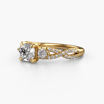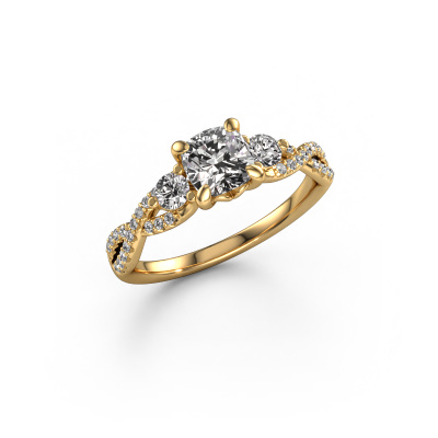 Der oben gezeigte Gold Verlobungsring wird Marilou CUS genannt. Es ist ein 3-stone Ring, da er einen zentralen Edelstein und ein Band mit Pavé-Fassung hat. Der traditionell 3-stone Verlobungsring ist in der Kombination 14 Karat Gold mit Gold und ist mit einem cussion 1.00 crt Diamant-Mittelstein besetzt und das Band hat eine Pavé-Fassung mit Diamanten. Jedes Schmuckstück ist einzigartig in jeder Hinsicht! Einfach nach Ihren Wünschen anzupassen. Um den zentralen Stein noch mehr zu betonen, hat das Band eine Pavé-Fassung mit weiteren Diamant. Durch die offenen Krappen kann das Licht aus mehreren Winkeln auf den Diamant treffen und der Diamant-Ring funkelt noch mehr. Das obere Foto zeigt die leidenschaftlich handgefertigten Details des Rings. Die hohe Positionierung der Mittelstein ist ein echter Blickfang. Der perfekte Verlobungsring für das Kronjuwel Ihres Lebens!Durch die Kombination modernster Technik mit uralter Handwerkskunst können wir alle Verlobungsringe in unserem eigenen Studio anfertigen. Jedes Schmuckstück wird auf Anfrage gefertigt. Das ist vorteilhaft, weil wir Ihnen dadurch einen Preis anbieten können, den Sie nirgendwo anders finden.Unser Team fügt unserer Online-Kollektion täglich neue Designs hinzu. Unsere Designer und Goldschmiede arbeiten zusammen, um das beste Design zu kreieren. Wir bemühen uns, eine vielfältige Kollektion von Schmuckstücken anzubieten. Vielleicht haben Sie ein bestimmtes Design im Sinn. Eines, dass Sie irgendwo gesehen haben. Gerne geben wir Ihnen eine kostenlose Beratung. Wir machen Ihnen ein Angebot, basierend auf einem fairen Preis/Leistungsverhältnis, das Sie verblüffen wird.Um es einfacher zu machen, bieten wir eine kostenlose 30-tägige Rücksendung.