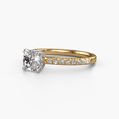 Der oben gezeigte Gold Verlobungsring wird Saskia 1 cus genannt. Es ist ein Pavé Solitär Ring, da er einen zentralen Edelstein und ein Band mit Pavé-Fassung hat. Der einzigartige Pavé Solitär Verlobungsring ist in der Kombination 14 Karat Gold mit Weißgold und ist mit einem cussion 1.00 crt Diamant-Mittelstein besetzt und das Band hat eine Pavé-Fassung mit Diamanten. Jedes Schmuckstück wird hergestellt von einem Team leidenschaftlicher Goldschmiede und Schmuckdesigner. Das wird Ihr Kronjuwel unbedingt zu einem Blickfang machen. Um den zentralen Stein noch mehr zu betonen, hat das Band eine Pavé-Fassung mit weiteren Diamant. Durch die offenen Krappen kann das Licht aus mehreren Winkeln auf den Diamant treffen und der Diamant-Ring funkelt noch mehr. Das obere Foto zeigt die leidenschaftlich handgefertigten Details des Rings. Die hohe Positionierung der Mittelstein ist ein echter Blickfang. Der perfekte Verlobungsring für das Kronjuwel Ihres Lebens!Durch die Kombination modernster Technik mit uralter Handwerkskunst können wir alle Verlobungsringe in unserem eigenen Studio anfertigen. Jedes Schmuckstück wird auf Anfrage gefertigt. Das ist vorteilhaft, weil wir Ihnen dadurch einen Preis anbieten können, den Sie nirgendwo anders finden.Unser Team fügt unserer Online-Kollektion täglich neue Designs hinzu. Unsere Designer und Goldschmiede arbeiten zusammen, um das beste Design zu kreieren. Wir bemühen uns, eine vielfältige Kollektion von Schmuckstücken anzubieten. Vielleicht haben Sie ein bestimmtes Design im Sinn. Eines, dass Sie irgendwo gesehen haben. Gerne geben wir Ihnen eine kostenlose Beratung. Wir machen Ihnen ein Angebot, basierend auf einem fairen Preis/Leistungsverhältnis, das Sie verblüffen wird.Um es einfacher zu machen, bieten wir eine kostenlose 30-tägige Rücksendung.