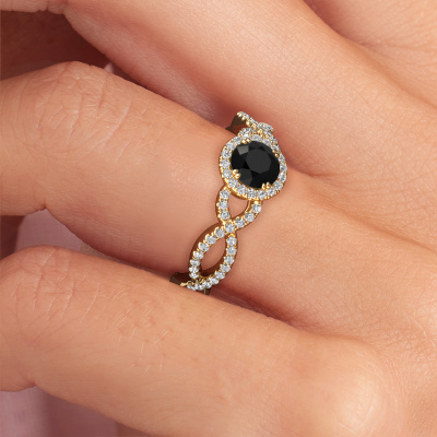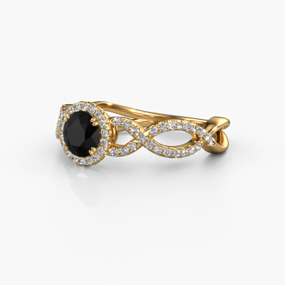 Der oben gezeigte Gold Verlobungsring wird Dionne rnd genannt. Es ist ein Pavé Solitär Ring, da er einen zentralen Edelstein und ein Band mit Pavé-Fassung hat. Der klassische Pavé Solitär Verlobungsring ist in der Kombination 14 Karat Gold mit Gold und ist mit einem rund 0.60 crt Schwarz Diamant-Mittelstein besetzt und das Band hat eine Pavé-Fassung mit Diamanten. Jedes Schmuckstück wird von unseren Meister-Goldschmieden in unserem eigenen Studio für Sie gefertigt. Um den zentralen Stein noch mehr zu betonen, hat das Band eine Pavé-Fassung mit weiteren Schwarz Diamant. Durch die offenen Krappen kann das Licht aus mehreren Winkeln auf den Schwarz Diamant treffen und der Schwarz Diamant-Ring funkelt noch mehr. Das obere Foto zeigt die leidenschaftlich handgefertigten Details des Rings. Die hohe Positionierung der Mittelstein ist ein echter Blickfang. Der perfekte Verlobungsring für das Kronjuwel Ihres Lebens!Da wir unsere eigenen Ringe entwerfen und liefern, können wir Ihnen einen Verlobungsring zu einem Preis anbieten, den Sie nirgendwo anders finden. Ein Ring wird auf Bestellung angefertigt, wodurch kein überschüssiges Material anfällt. So können wir Ihnen ein gutes Angebot zum besten Preis machen. Wir verstehen, dass es sich riskant anfühlt, Ihren Verlobungsring online zu kaufen. Jedoch helfen wir Ihnen gerne beim Designprozess unter Berücksichtigung Ihres Budgets.Haben Sie einen bestimmten Ring im Sinn? Eines, dass Sie irgendwo gesehen haben. Bitte zögern Sie nicht, uns zu sagen, was Sie wollen und wir werden Ihr Design in einen Einzigartigen Verlobungsring verwandeln. Sie können die Entwicklungen Ihres Ringdesigns verfolgen, da wir 3D-Zeichnungen verwenden. Das gibt Ihnen eine realistische Vorschau Ihres Designs. Wir senden Ihnen gerne ein unverbindliches Angebot zu einem fairen Preis/Leistungsverhältnis. Es wird Sie erstaunen.Um es einfacher zu machen, bieten wir eine kostenlose 30-tägige Rücksendung.