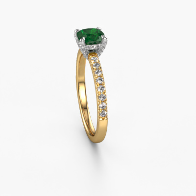Der oben gezeigte Gold Verlobungsring wird Saskia 1 cus genannt. Es ist ein Pavé Solitär Ring, da er einen zentralen Edelstein und ein Band mit Pavé-Fassung hat. Der einzigartige Pavé Solitär Verlobungsring ist in der Kombination 14 Karat Gold mit Weißgold und ist mit einem cussion 5.5 mm Smaragd-Mittelstein besetzt und das Band hat eine Pavé-Fassung mit Diamanten. Jedes Schmuckstück wird hergestellt von einem Team leidenschaftlicher Goldschmiede und Schmuckdesigner. Das wird Ihr Kronjuwel unbedingt zu einem Blickfang machen. Um den zentralen Stein noch mehr zu betonen, hat das Band eine Pavé-Fassung mit weiteren Smaragd. Durch die offenen Krappen kann das Licht aus mehreren Winkeln auf den Smaragd treffen und der Smaragd-Ring funkelt noch mehr. Das obere Foto zeigt die leidenschaftlich handgefertigten Details des Rings. Die hohe Positionierung der Mittelstein ist ein echter Blickfang. Der perfekte Verlobungsring für das Kronjuwel Ihres Lebens!Durch die Kombination modernster Technik mit uralter Handwerkskunst können wir alle Verlobungsringe in unserem eigenen Studio anfertigen. Jedes Schmuckstück wird auf Anfrage gefertigt. Das ist vorteilhaft, weil wir Ihnen dadurch einen Preis anbieten können, den Sie nirgendwo anders finden.Unser Team fügt unserer Online-Kollektion täglich neue Designs hinzu. Unsere Designer und Goldschmiede arbeiten zusammen, um das beste Design zu kreieren. Wir bemühen uns, eine vielfältige Kollektion von Schmuckstücken anzubieten. Vielleicht haben Sie ein bestimmtes Design im Sinn. Eines, dass Sie irgendwo gesehen haben. Gerne geben wir Ihnen eine kostenlose Beratung. Wir machen Ihnen ein Angebot, basierend auf einem fairen Preis/Leistungsverhältnis, das Sie verblüffen wird.Um es einfacher zu machen, bieten wir eine kostenlose 30-tägige Rücksendung.