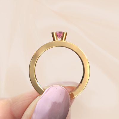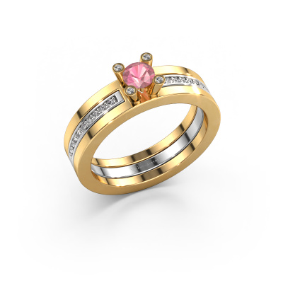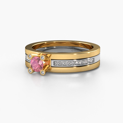 Der oben gezeigte Gold Verlobungsring wird Alisha genannt. Es ist ein Pavé Solitär Ring, da er einen zentralen Edelstein und ein Band mit Pavé-Fassung hat. Der design Pavé Solitär Verlobungsring ist in der Kombination 14 Karat Gold mit Weißgold und ist mit einem rund 4 mm Turmalin rosa-Mittelstein besetzt und das Band hat eine Pavé-Fassung mit Diamanten. Jedes Schmuckstück ist einzigartig in jeder Hinsicht! Einfach nach Ihren Wünschen anzupassen. Um den zentralen Stein noch mehr zu betonen, hat das Band eine Pavé-Fassung mit weiteren Turmalin rosa. Durch die offenen Krappen kann das Licht aus mehreren Winkeln auf den Turmalin rosa treffen und der Turmalin rosa-Ring funkelt noch mehr. Das obere Foto zeigt die leidenschaftlich handgefertigten Details des Rings. Die hohe Positionierung der Mittelstein ist ein echter Blickfang. Der perfekte Verlobungsring für das Kronjuwel Ihres Lebens!Durch die Kombination modernster Technik mit uralter Handwerkskunst können wir alle Verlobungsringe in unserem eigenen Studio anfertigen. Jedes Schmuckstück wird auf Anfrage gefertigt. Das ist vorteilhaft, weil wir Ihnen dadurch einen Preis anbieten können, den Sie nirgendwo anders finden.Haben Sie irgendwo einen bestimmten Verlobungsring gefunden, den Sie Ihrem Liebsten schenken möchten? Sie können uns gerne sagen, was Sie wollen und wir werden Ihr Design in einen Einzigartigen design Verlobungsring verwandeln. Sie können die Entwicklungen Ihres Ringdesigns verfolgen, da wir 3D-Zeichnungen verwenden. Das gibt Ihnen eine realistische Vorschau, wie Ihr Design aussehen wird. Sie können auch einen Dummy vorbestellen. Ein Dummy ist ein Kunststoffring, der nach Ihrem Ringdesign gestaltet werden kann. Sie können ihn anprobieren und prüfen, ob seine Breite und Größe für Sie geeignet sind. Wir senden Ihnen gerne ein unverbindliches Angebot zu einem fairen Preis/Leistungsverhältnis. Sie werden in Anbetracht der Qualität des Rings und der Edelsteine überrascht sein.Um es einfacher zu machen, bieten wir eine kostenlose 30-tägige Rücksendung.