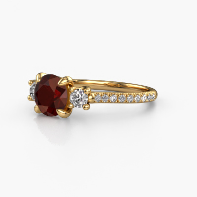 Dieser Verlobungsring aus 14 Karat Gold mit 6.8 mm Granat heißt Jesica. Was macht Ihre Beziehung einzigartig? Was hat sie an sich, was Sie dazu bringt, auf die Knie zu fallen? Die einzigartige Verbindung zwischen Ihnen beiden wird durch einen ebenso einzigartigen Ring unterstrichen. Ein einzigartiger 3-stone Verlobungsring, der nur für sie gemacht wurde. Deshalb passt dieser Ring wie angegossen. Jedes einzelne Detail dieses graziöse, Gold Granat Verlobungsring wird von unserem erfahrenen Goldschmieden in unserem eigenen Studio von Hand ausgesucht, bearbeitet und poliert. Das Endprodukt ist ein exquisiter Ring, einzigartig und bis zur Perfektion gebracht. Danach streben unsere erfahrenen Juweliere. Jedes Schmuckstück wird nur für Sie persönlich hergestellt, mit Liebe zum Detail und Design.Nach Erhalt Ihrer Bestellung beginnen unsere Goldschmiede mit Leidenschaft den kreativen Prozess und fertigen Ihren Verlobungsring in unserem eigenen Studio. Da wir keine großen Lager haben, werden diese Kosten nicht an Sie weitergegeben. Unsere Preisgestaltung ist der Beweis dafür! Wir bieten Schmuck zum niedrigsten Preis, garantiert.Verschiedene Arten von neuen Ringen werden täglich von unserem Team angefertigt. Vielleicht haben Sie irgendwo einen 3-stone Verlobungsring gefunden. Einen, den Sie Ihrem Liebsten schenken möchten. Bitte zögern Sie nicht, unseren Schmuckdesignern Ihre Gedanken und Ihr Design zu zeigen. Wir würden gerne Ihr Design in einen klassische Verlobungsring verwandeln. Sie können die Entwicklungen Ihres Ringdesigns verfolgen, da wir sehr detaillierte 3D-Zeichnungen verwenden. Darüber hinaus können Sie einen Dummy des Designs bestellen. Ein Dummy ist ein Kunststoffring, der nach Ihrem Ringdesign gestaltet werden kann. Sie können ihn anprobieren und prüfen, ob der Verlobungsring Ihren Vorstellungen entspricht. Wir senden Ihnen gerne ein unverbindliches Angebot zu einem fairen Preis/Leistungsverhältnis. Das Angebot wird Sie angesichts der Qualität des Rings und der Edelsteine verblüffen.Um es einfacher zu machen, bieten wir eine kostenlose 30-tägige Rücksendung.