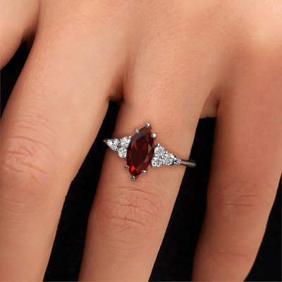 Dieser Verlobungsring aus Platin mit 11x5.5 mm Granat heißt Melani MRQ. Was macht Ihre Beziehung einzigartig? Was hat sie an sich, was Sie dazu bringt, auf die Knie zu fallen? Die einzigartige Verbindung zwischen Ihnen beiden wird durch einen ebenso einzigartigen Ring unterstrichen. Ein einzigartiger Cluster Verlobungsring, der nur für sie gemacht wurde. Deshalb passt dieser Ring wie angegossen. Jedes einzelne Detail dieses graziöse, Platin Granat Verlobungsring wird von unserem erfahrenen Goldschmieden in unserem eigenen Studio von Hand ausgesucht, bearbeitet und poliert. Das Endprodukt ist ein exquisiter Ring, einzigartig und bis zur Perfektion gebracht. Danach streben unsere erfahrenen Juweliere. Jedes Schmuckstück wird nur für Sie persönlich hergestellt, mit Liebe zum Detail und Design.Nach Erhalt Ihrer Bestellung beginnen unsere Goldschmiede mit Leidenschaft den kreativen Prozess und fertigen Ihren Verlobungsring in unserem eigenen Studio. Da wir keine großen Lager haben, werden diese Kosten nicht an Sie weitergegeben. Unsere Preisgestaltung ist der Beweis dafür! Wir bieten Schmuck zum niedrigsten Preis, garantiert.Haben Sie einen bestimmten Ring im Sinn? Eines, dass Sie irgendwo gesehen haben. Bitte zögern Sie nicht, uns zu sagen, was Sie wollen und wir werden Ihr Design in einen Einzigartigen Verlobungsring verwandeln. Sie können die Entwicklungen Ihres Ringdesigns verfolgen, da wir 3D-Zeichnungen verwenden. Das gibt Ihnen eine realistische Vorschau Ihres Designs. Wir senden Ihnen gerne ein unverbindliches Angebot zu einem fairen Preis/Leistungsverhältnis. Es wird Sie erstaunen.Um es einfacher zu machen, bieten wir eine kostenlose 30-tägige Rücksendung.