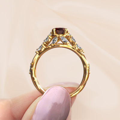 Dieser Verlobungsring aus 14 Karat Gold mit 7,5x5,5 mm Granat heißt Samantha OVL. Was macht Ihre Beziehung einzigartig? Was hat sie an sich, was Sie dazu bringt, auf die Knie zu fallen? Die einzigartige Verbindung zwischen Ihnen beiden wird durch einen ebenso einzigartigen Ring unterstrichen. Ein einzigartiger Pavé Solitär Verlobungsring, der nur für sie gemacht wurde. Deshalb passt dieser Ring wie angegossen. Jedes einzelne Detail dieses besondere, Gold Granat Verlobungsring wird von unserem erfahrenen Goldschmieden in unserem eigenen Studio von Hand ausgesucht, bearbeitet und poliert. Das Endprodukt ist ein exquisiter Ring, einzigartig und bis zur Perfektion gebracht. Danach streben unsere erfahrenen Juweliere. Jedes Schmuckstück wird von unseren Meister-Goldschmieden in unserem eigenen Studio für Sie gefertigt.Nach Erhalt Ihrer Bestellung beginnen unsere Goldschmiede mit Leidenschaft den kreativen Prozess und fertigen Ihren Verlobungsring in unserem eigenen Studio. Da wir keine großen Lager haben, werden diese Kosten nicht an Sie weitergegeben. Unsere Preisgestaltung ist der Beweis dafür! Wir bieten Schmuck zum niedrigsten Preis, garantiert.Unser Team fügt unserer Online-Kollektion täglich neue Designs hinzu. Unsere Designer und Goldschmiede arbeiten zusammen, um das beste Design zu kreieren. Wir bemühen uns, eine vielfältige Kollektion von Schmuckstücken anzubieten. Vielleicht haben Sie ein bestimmtes Design im Sinn. Eines, dass Sie irgendwo gesehen haben. Gerne geben wir Ihnen eine kostenlose Beratung. Wir machen Ihnen ein Angebot, basierend auf einem fairen Preis/Leistungsverhältnis, das Sie verblüffen wird.Um es einfacher zu machen, bieten wir eine kostenlose 30-tägige Rücksendung.