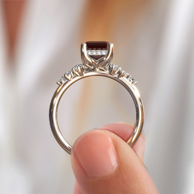 Der oben gezeigte Ring wird Emma EME genannt. Es ist ein Pavé Solitär Ring, da er einen zentralen Edelstein und ein Band mit Pavé-Fassung hat. Dieser Platin ring ist mit einem 8x6 mm smaragd schliff Granat-Mittelstein besetzt und das Band hat eine Pavé-Fassung mit Lab grown Diamant. Jedes Schmuckstück wird hergestellt mit Leidenschaft und Liebe, von einem unserer Meister-Goldschmiede.Dieser Fantasie Platin Pavé Solitär Verlobungsring mit Pavé-Fassung hat einen exquisiten, smaragd schliff Granat als Mittelstein. Um den zentralen Stein noch mehr zu betonen, hat das Band eine Pavé-Fassung mit weiteren Lab grown Diamant. Durch die offenen Krappen kann das Licht aus mehreren Winkeln auf den Granat treffen und der Granat-Ring funkelt noch mehr. Das obere Foto zeigt die leidenschaftlich handgefertigten Details des Rings. Die hohe Positionierung der Mittelstein ist ein echter Blickfang. Der perfekte Verlobungsring für das Kronjuwel Ihres Lebens!Nach Erhalt Ihrer Bestellung beginnen unsere Goldschmiede mit Leidenschaft den kreativen Prozess und fertigen Ihren Verlobungsring in unserem eigenen Studio. Da wir keine großen Lager haben, werden diese Kosten nicht an Sie weitergegeben. Unsere Preisgestaltung ist der Beweis dafür! Wir bieten Schmuck zum niedrigsten Preis, garantiert.Unser Team fügt unserer Online-Kollektion täglich neue Designs hinzu. Unsere Designer und Goldschmiede arbeiten zusammen, um das beste Design zu kreieren. Wir bemühen uns, eine vielfältige Kollektion von Schmuckstücken anzubieten. Vielleicht haben Sie ein bestimmtes Design im Sinn. Eines, dass Sie irgendwo gesehen haben. Gerne geben wir Ihnen eine kostenlose Beratung. Wir machen Ihnen ein Angebot, basierend auf einem fairen Preis/Leistungsverhältnis, das Sie verblüffen wird.Um es einfacher zu machen, bieten wir eine kostenlose 30-tägige Rücksendung.