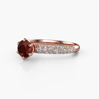 Der oben gezeigte Ring wird Meryl genannt. Es ist ein Pavé Solitär Ring, da er einen zentralen Edelstein und ein Band mit Pavé-Fassung hat. Dieser 14 Karat Roségold ring ist mit einem 5.7 mm rund Granat-Mittelstein besetzt und das Band hat eine Pavé-Fassung mit Diamanten. Jedes Schmuckstück wird nur für Sie persönlich hergestellt, mit Liebe zum Detail und Design.Dieser exklusive Roségold Pavé Solitär Verlobungsring mit Pavé-Fassung hat einen exquisiten, rund Granat als Mittelstein. Um den zentralen Stein noch mehr zu betonen, hat das Band eine Pavé-Fassung mit weiteren Diamanten. Durch die offenen Krappen kann das Licht aus mehreren Winkeln auf den Granat treffen und der Granat-Ring funkelt noch mehr. Das obere Foto zeigt die leidenschaftlich handgefertigten Details des Rings. Die hohe Positionierung der Mittelstein ist ein echter Blickfang. Der perfekte Verlobungsring für das Kronjuwel Ihres Lebens!Nach Erhalt Ihrer Bestellung beginnen unsere Goldschmiede mit Leidenschaft den kreativen Prozess und fertigen Ihren Verlobungsring in unserem eigenen Studio. Da wir keine großen Lager haben, werden diese Kosten nicht an Sie weitergegeben. Unsere Preisgestaltung ist der Beweis dafür! Wir bieten Schmuck zum niedrigsten Preis, garantiert.Haben Sie irgendwo einen bestimmten Verlobungsring gefunden, den Sie Ihrem Liebsten schenken möchten? Sie können uns gerne sagen, was Sie wollen und wir werden Ihr Design in einen Einzigartigen exklusive Verlobungsring verwandeln. Sie können die Entwicklungen Ihres Ringdesigns verfolgen, da wir 3D-Zeichnungen verwenden. Das gibt Ihnen eine realistische Vorschau, wie Ihr Design aussehen wird. Sie können auch einen Dummy vorbestellen. Ein Dummy ist ein Kunststoffring, der nach Ihrem Ringdesign gestaltet werden kann. Sie können ihn anprobieren und prüfen, ob seine Breite und Größe für Sie geeignet sind. Wir senden Ihnen gerne ein unverbindliches Angebot zu einem fairen Preis/Leistungsverhältnis. Sie werden in Anbetracht der Qualität des Rings und der Edelsteine überrascht sein.Um es einfacher zu machen, bieten wir eine kostenlose 30-tägige Rücksendung.