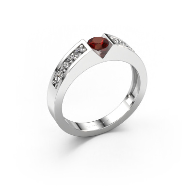 Der oben gezeigte Ring wird Lizzy 2 genannt. Es ist ein Pavé Solitär Ring, da er einen zentralen Edelstein und ein Band mit Pavé-Fassung hat. Dieser 14 Karat Weißgold ring ist mit einem 4.2 mm rund Granat-Mittelstein besetzt und das Band hat eine Pavé-Fassung mit Diamanten. Jedes Schmuckstück lässt Ihren Finger erstrahlen. Ihr Ring ist mit Liebe von unseren Goldschmieden handgefertigt.Dieser moderne Weißgold Pavé Solitär Verlobungsring mit Pavé-Fassung hat einen exquisiten, rund Granat als Mittelstein. Um den zentralen Stein noch mehr zu betonen, hat das Band eine Pavé-Fassung mit weiteren Diamanten. Durch die offenen Krappen kann das Licht aus mehreren Winkeln auf den Granat treffen und der Granat-Ring funkelt noch mehr. Das obere Foto zeigt die leidenschaftlich handgefertigten Details des Rings. Die hohe Positionierung der Mittelstein ist ein echter Blickfang. Der perfekte Verlobungsring für das Kronjuwel Ihres Lebens!Durch die Kombination modernster Technik mit uralter Handwerkskunst können wir alle Verlobungsringe in unserem eigenen Studio anfertigen. Jedes Schmuckstück wird auf Anfrage gefertigt. Das ist vorteilhaft, weil wir Ihnen dadurch einen Preis anbieten können, den Sie nirgendwo anders finden.Unser Team fügt unserer Online-Kollektion täglich neue Designs hinzu. Unsere Designer und Goldschmiede arbeiten zusammen, um das beste Design zu kreieren. Wir bemühen uns, eine vielfältige Kollektion von Schmuckstücken anzubieten. Vielleicht haben Sie ein bestimmtes Design im Sinn. Eines, dass Sie irgendwo gesehen haben. Gerne geben wir Ihnen eine kostenlose Beratung. Wir machen Ihnen ein Angebot, basierend auf einem fairen Preis/Leistungsverhältnis, das Sie verblüffen wird.Um es einfacher zu machen, bieten wir eine kostenlose 30-tägige Rücksendung.