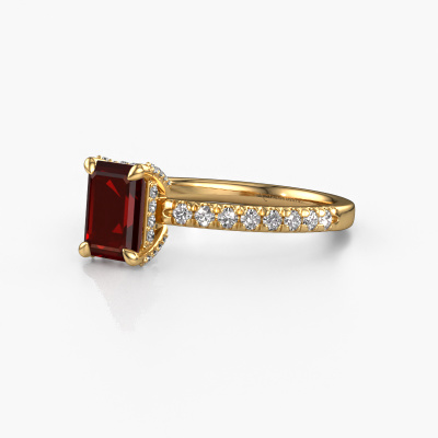 Der oben gezeigte Verlobungsring wird Saskia eme 1 genannt. Wir nennen das einen Solitär-Ring, denn er hat einen einzelnen Edelstein. Es ist ein 14 Karat Gold ring, mit 7x5 mm smaragd schliff Granat. Das Besondere an unserem Konfigurator ist dass Sie selbst einem Schmuckstück zusammenstellen können zu einem eigenen persönlichen Schmuckstück. Dieser Solitäre Verlobungsring ist gefertigt in der Edelmetall Kombination Gold mit Gold, aber Sie können also auch wählen aus anderen Farben. Jedes Schmuckstück wird hergestellt mit Leidenschaft und Liebe, von einem unserer Meister-Goldschmiede. Der Solitär-Verlobungsring ist eine Sonderform des Verlobungsring. Seine offenen Krappen ermöglichen, dass Licht aus mehr Winkeln auf den Edelstein trifft. Dieser exklusive Verlobungsring ist durch die hohe Positionierung des Edelsteins ein atemberaubender Blickfang. Wir schmücken diesen Solitär-Ring sorgfältig von Hand, damit Sie Ihren Anfrage mit einem einzigartigen Ring würdigen können. Die Liebe Ihres Lebens verdient nur das Beste. Nach Erhalt Ihrer Bestellung beginnen unsere Goldschmiede mit Leidenschaft den kreativen Prozess und fertigen Ihren Verlobungsring in unserem eigenen Studio. Da wir keine großen Lager haben, werden diese Kosten nicht an Sie weitergegeben. Unsere Preisgestaltung ist der Beweis dafür! Wir bieten Schmuck zum niedrigsten Preis, garantiert.Unser Team fügt unserer Online-Kollektion täglich neue Designs hinzu. Unsere Designer und Goldschmiede arbeiten zusammen, um das beste Design zu kreieren. Wir bemühen uns, eine vielfältige Kollektion von Schmuckstücken anzubieten. Vielleicht haben Sie ein bestimmtes Design im Sinn. Eines, dass Sie irgendwo gesehen haben. Gerne geben wir Ihnen eine kostenlose Beratung. Wir machen Ihnen ein Angebot, basierend auf einem fairen Preis/Leistungsverhältnis, das Sie verblüffen wird.Um es einfacher zu machen, bieten wir eine kostenlose 30-tägige Rücksendung.