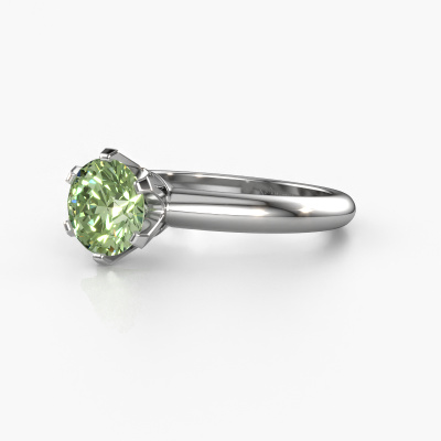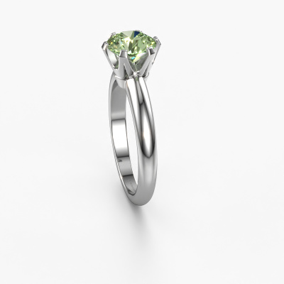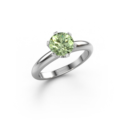 Der oben gezeigte Verlobungsring wird Tiffy 1 genannt. Wir nennen das einen Solitär-Ring, denn er hat einen einzelnen Edelstein. Es ist ein 14 Karat Weißgold ring, mit 7 mm rund grüner Labor-Diamant. Das Besondere an unserem Konfigurator ist dass Sie selbst einem Schmuckstück zusammenstellen können zu einem eigenen persönlichen Schmuckstück. Dieser Solitäre Verlobungsring ist gefertigt in der Edelmetall Kombination Weißgold mit Weißgold, aber Sie können also auch wählen aus anderen Farben. Jedes Schmuckstück wird nur für Sie persönlich hergestellt, mit Liebe zum Detail und Design. Der Solitär-Verlobungsring ist eine Sonderform des Verlobungsring. Seine offenen Krappen ermöglichen, dass Licht aus mehr Winkeln auf den Edelstein trifft. Dieser klassische Verlobungsring ist durch die hohe Positionierung des Edelsteins ein atemberaubender Blickfang. Wir schmücken diesen Solitär-Ring sorgfältig von Hand, damit Sie Ihren Anfrage mit einem einzigartigen Ring würdigen können. Die Liebe Ihres Lebens verdient nur das Beste. Mit unserer modernen Technik können wir Schmuckstücke von höchster Qualität mit größter Sorgfalt für Sie entwerfen und anpassen. Unsere Verlobungsringe sind immer um 30 Prozent günstiger als bei anderen Juwelieren. Wir fertigen Verlobungsringe auf Bestellung, also müssen wir keine großen Lager unterhalten. Wenn Sie ein bestimmtes Budget haben, beraten wir Sie gerne entsprechend.Unsere Designer und Goldschmiede arbeiten jeden Tag zusammen und versuchen, neue Schmuckstücke zu kreieren. Vielleicht haben Sie irgendwo einen schönen, klassische Verlobungsring gefunden, nach dem Ihr einzigartiger Ring gestaltet werden kann. Setzen Sie sich mit uns in Verbindung. Wir machen Ihnen ein Angebot, basierend auf einem fairen Preis/Leistungsverhältnis, das Sie begeistern wird.Um es einfacher zu machen, bieten wir eine kostenlose 30-tägige Rücksendung.