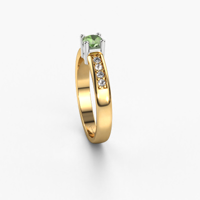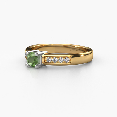 Der oben gezeigte Gold Verlobungsring wird Eline 2 genannt. Es ist ein Pavé Solitär Ring, da er einen zentralen Edelstein und ein Band mit Pavé-Fassung hat. Der moderne Pavé Solitär Verlobungsring ist in der Kombination 14 Karat Gold mit Weißgold und ist mit einem rund 3.7 mm Turmalin grün-Mittelstein besetzt und das Band hat eine Pavé-Fassung mit Diamanten. Jedes Schmuckstück ist einzigartig in jeder Hinsicht! Einfach nach Ihren Wünschen anzupassen. Um den zentralen Stein noch mehr zu betonen, hat das Band eine Pavé-Fassung mit weiteren Turmalin grün. Durch die offenen Krappen kann das Licht aus mehreren Winkeln auf den Turmalin grün treffen und der Turmalin grün-Ring funkelt noch mehr. Das obere Foto zeigt die leidenschaftlich handgefertigten Details des Rings. Die hohe Positionierung der Mittelstein ist ein echter Blickfang. Der perfekte Verlobungsring für das Kronjuwel Ihres Lebens!Da wir unsere eigenen Ringe entwerfen und liefern, können wir Ihnen einen Verlobungsring zu einem Preis anbieten, den Sie nirgendwo anders finden. Ein Ring wird auf Bestellung angefertigt, wodurch kein überschüssiges Material anfällt. So können wir Ihnen ein gutes Angebot zum besten Preis machen. Wir verstehen, dass es sich riskant anfühlt, Ihren Verlobungsring online zu kaufen. Jedoch helfen wir Ihnen gerne beim Designprozess unter Berücksichtigung Ihres Budgets.Unser Team fügt unserer Online-Kollektion täglich neue Designs hinzu. Unsere Designer und Goldschmiede arbeiten zusammen, um das beste Design zu kreieren. Wir bemühen uns, eine vielfältige Kollektion von Schmuckstücken anzubieten. Vielleicht haben Sie ein bestimmtes Design im Sinn. Eines, dass Sie irgendwo gesehen haben. Gerne geben wir Ihnen eine kostenlose Beratung. Wir machen Ihnen ein Angebot, basierend auf einem fairen Preis/Leistungsverhältnis, das Sie verblüffen wird.Um es einfacher zu machen, bieten wir eine kostenlose 30-tägige Rücksendung.