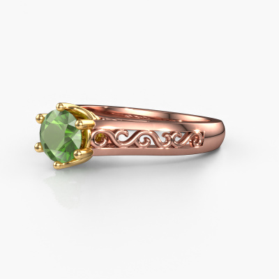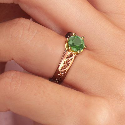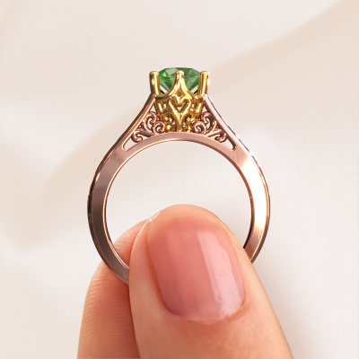 Der oben gezeigte Verlobungsring wird Shan genannt. Wir nennen das einen Solitär-Ring, denn er hat einen einzelnen Edelstein. Es ist ein 14 Karat Roségold ring, mit 6 mm rund Turmalin grün. Das Besondere an unserem Konfigurator ist dass Sie selbst einem Schmuckstück zusammenstellen können zu einem eigenen persönlichen Schmuckstück. Dieser Solitäre Verlobungsring ist gefertigt in der Edelmetall Kombination Roségold mit Gold, aber Sie können also auch wählen aus anderen Farben. Jedes Schmuckstück wird hergestellt von einem Team leidenschaftlicher Goldschmiede und Schmuckdesigner. Das wird Ihr Kronjuwel unbedingt zu einem Blickfang machen. Der Solitär-Verlobungsring ist eine Sonderform des Verlobungsring. Seine offenen Krappen ermöglichen, dass Licht aus mehr Winkeln auf den Edelstein trifft. Dieser Keltische Verlobungsring ist durch die hohe Positionierung des Edelsteins ein atemberaubender Blickfang. Wir schmücken diesen Solitär-Ring sorgfältig von Hand, damit Sie Ihren Anfrage mit einem einzigartigen Ring würdigen können. Die Liebe Ihres Lebens verdient nur das Beste. Mit unserer modernen Technik können wir Schmuckstücke von höchster Qualität mit größter Sorgfalt für Sie entwerfen und anpassen. Unsere Verlobungsringe sind immer um 30 Prozent günstiger als bei anderen Juwelieren. Wir fertigen Verlobungsringe auf Bestellung, also müssen wir keine großen Lager unterhalten. Wenn Sie ein bestimmtes Budget haben, beraten wir Sie gerne entsprechend.Haben Sie irgendwo einen bestimmten Verlobungsring gefunden, den Sie Ihrem Liebsten schenken möchten? Sie können uns gerne sagen, was Sie wollen und wir werden Ihr Design in einen Einzigartigen Keltische Verlobungsring verwandeln. Sie können die Entwicklungen Ihres Ringdesigns verfolgen, da wir 3D-Zeichnungen verwenden. Das gibt Ihnen eine realistische Vorschau, wie Ihr Design aussehen wird. Sie können auch einen Dummy vorbestellen. Ein Dummy ist ein Kunststoffring, der nach Ihrem Ringdesign gestaltet werden kann. Sie können ihn anprobieren und prüfen, ob seine Breite und Größe für Sie geeignet sind. Wir senden Ihnen gerne ein unverbindliches Angebot zu einem fairen Preis/Leistungsverhältnis. Sie werden in Anbetracht der Qualität des Rings und der Edelsteine überrascht sein.Um es einfacher zu machen, bieten wir eine kostenlose 30-tägige Rücksendung.