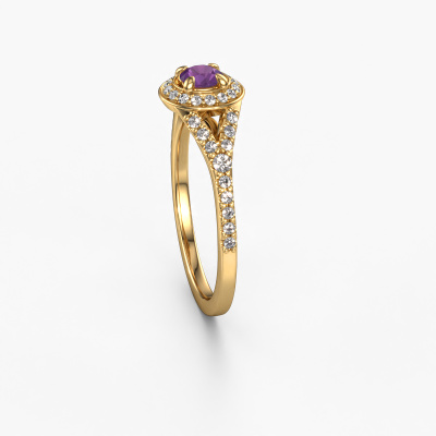 Dieser Ring aus 14 Karat Gold heißt Pamela RND und hat 4 mm Amethyst. Dieser ajour 14 Karat Gold Halo Verlobungsring ist ein wahres Kunstwerk! Die Ornamente werden mit viel Geduld und großer Leidenschaft gefertigt. Um diesen Ring mit großer Präzision zu schaffen, erfordert dieses Handwerk ein scharfes Auge und eine geschickte Hand. Eine Herausforderung, die bei unseren erfahrenen Juwelieren ein Feuer entfacht. Die exquisiten Amethysten sind auf eine besondere Art und Weise gefasst, so dass sie noch mehr hervorstechen. Dies verleiht dem Ring eine noch glamourösere Erscheinung. Der Ring an sich ist schon wegen der Edelsteine einzigartig, die wir speziell für diesen Ring auswählen. Obendrein wählen Sie die Edelmetalle aus, mit denen Ihr einzigartiger Ring für die außergewöhnlichste Frau Ihres Lebens gemacht wird! Jedes Schmuckstück ist einzigartig in jeder Hinsicht! Einfach nach Ihren Wünschen anzupassen.Da wir unsere eigenen Ringe entwerfen und liefern, können wir Ihnen einen Verlobungsring zu einem Preis anbieten, den Sie nirgendwo anders finden. Ein Ring wird auf Bestellung angefertigt, wodurch kein überschüssiges Material anfällt. So können wir Ihnen ein gutes Angebot zum besten Preis machen. Wir verstehen, dass es sich riskant anfühlt, Ihren Verlobungsring online zu kaufen. Jedoch helfen wir Ihnen gerne beim Designprozess unter Berücksichtigung Ihres Budgets.Unser Team fügt unserer Online-Kollektion täglich neue Designs hinzu. Unsere Designer und Goldschmiede arbeiten zusammen, um das beste Design zu kreieren. Wir bemühen uns, eine vielfältige Kollektion von Schmuckstücken anzubieten. Vielleicht haben Sie ein bestimmtes Design im Sinn. Eines, dass Sie irgendwo gesehen haben. Gerne geben wir Ihnen eine kostenlose Beratung. Wir machen Ihnen ein Angebot, basierend auf einem fairen Preis/Leistungsverhältnis, das Sie verblüffen wird.Um es einfacher zu machen, bieten wir eine kostenlose 30-tägige Rücksendung.
