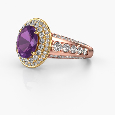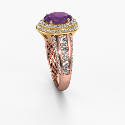 Dieser Ring aus 14 Karat Roségold heißt Nancie und hat 9x7 mm Amethyst. Dieser graziöse 14 Karat Roségold Halo Verlobungsring ist ein wahres Kunstwerk! Die Ornamente werden mit viel Geduld und großer Leidenschaft gefertigt. Um diesen Ring mit großer Präzision zu schaffen, erfordert dieses Handwerk ein scharfes Auge und eine geschickte Hand. Eine Herausforderung, die bei unseren erfahrenen Juwelieren ein Feuer entfacht. Die exquisiten Amethysten sind auf eine besondere Art und Weise gefasst, so dass sie noch mehr hervorstechen. Dies verleiht dem Ring eine noch glamourösere Erscheinung. Der Ring an sich ist schon wegen der Edelsteine einzigartig, die wir speziell für diesen Ring auswählen. Obendrein wählen Sie die Edelmetalle aus, mit denen Ihr einzigartiger Ring für die außergewöhnlichste Frau Ihres Lebens gemacht wird! Jedes Schmuckstück ist um Ihrem Finger Glanz zu verleihen. Jeder Ring wird von unseren Goldschmieden liebevoll von Hand gefertigt.Haben Sie ein bestimmtes Budget? Sie können uns gerne kontaktieren, damit wir Ihre Optionen besprechen können. Wir bieten unsere Verlobungsringe zum garantiert besten Preis, denn wir fertigen sie auf Bestellung. Solche Preise finden Sie nirgendwo anders!Unsere Designer und Goldschmiede arbeiten jeden Tag zusammen und versuchen, neue Schmuckstücke zu kreieren. Vielleicht haben Sie irgendwo einen schönen, klassische Verlobungsring gefunden, nach dem Ihr einzigartiger Ring gestaltet werden kann. Setzen Sie sich mit uns in Verbindung. Wir machen Ihnen ein Angebot, basierend auf einem fairen Preis/Leistungsverhältnis, das Sie begeistern wird.Um es einfacher zu machen, bieten wir eine kostenlose 30-tägige Rücksendung.