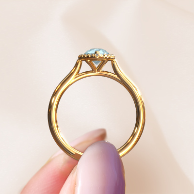 Dieser Ring aus 14 Karat Gold heißt Seline per 1 und hat 7x5 mm Aquamarin. Dieser charmant 14 Karat Gold Halo Verlobungsring ist ein wahres Kunstwerk! Die Ornamente werden mit viel Geduld und großer Leidenschaft gefertigt. Um diesen Ring mit großer Präzision zu schaffen, erfordert dieses Handwerk ein scharfes Auge und eine geschickte Hand. Eine Herausforderung, die bei unseren erfahrenen Juwelieren ein Feuer entfacht. Die exquisiten Aquamarins sind auf eine besondere Art und Weise gefasst, so dass sie noch mehr hervorstechen. Dies verleiht dem Ring eine noch glamourösere Erscheinung. Der Ring an sich ist schon wegen der Edelsteine einzigartig, die wir speziell für diesen Ring auswählen. Obendrein wählen Sie die Edelmetalle aus, mit denen Ihr einzigartiger Ring für die außergewöhnlichste Frau Ihres Lebens gemacht wird! Jedes Schmuckstück wird hergestellt mit Leidenschaft und Liebe, von einem unserer Meister-Goldschmiede.Nachdem Sie Ihre Bestellung aufgegeben haben, beginnen unsere Goldschmiede mit dem kreativen Prozess der Herstellung Ihres Seline per 1 Verlobungsring. Wir haben keine Lager. Das ist vorteilhaft, da diese Kosten nicht an Sie weitergegeben werden. Daher sind wir in der Lage, Schmuck zu außergewöhnlich niedrigen Preisen anzubieten.Unser Team fügt unserer Online-Kollektion täglich neue Designs hinzu. Unsere Designer und Goldschmiede arbeiten zusammen, um das beste Design zu kreieren. Wir bemühen uns, eine vielfältige Kollektion von Schmuckstücken anzubieten. Vielleicht haben Sie ein bestimmtes Design im Sinn. Eines, dass Sie irgendwo gesehen haben. Gerne geben wir Ihnen eine kostenlose Beratung. Wir machen Ihnen ein Angebot, basierend auf einem fairen Preis/Leistungsverhältnis, das Sie verblüffen wird.Um es einfacher zu machen, bieten wir eine kostenlose 30-tägige Rücksendung.