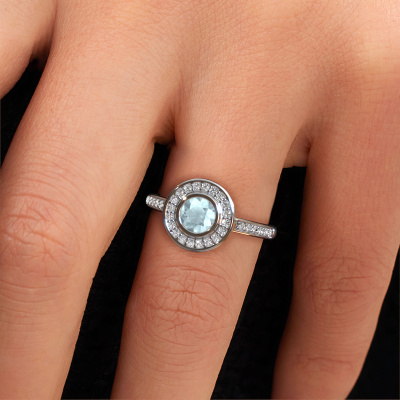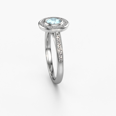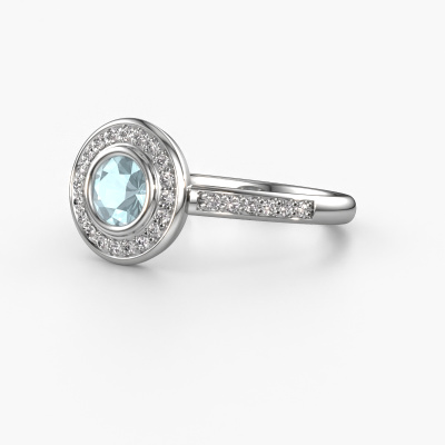 Der oben gezeigte Verlobungsring wird Noud 2 RND genannt. Es ist ein Halo Ring, da er einen zentralen Edelstein und ein Band mit Pavé-Fassung hat. Der Platin ring ist mit einem 5 mm rund Aquamarin-Mittelstein besetzt und um ihn herum eine Pavé-Fassung mit Diamanten. Was diesen Luxus, Platin Halo Ring besonders macht, sind die kleineren Steine, die den zentralen Stein umschließen. Dieser wunderschöne Verlobungsring wird als Halo Ring bezeichnet, da die kleineren Edelsteine dem zentralen Stein einen Lichthof geben. Damit die kleineren Steine den Mittelstein verstärken, müssen sie so platziert werden, dass keine Lichteinflüsse auftreten. Und hier kommen unsere erfahrenen Goldschmiede ins Spiel. Jeder einzelne Stein wird sorgfältig von Hand in den Ring gesetzt. Während der Herstellung wird der Lichteinfall ständig überprüft. So können wir sicherstellen, dass der spezielle Lichtkranz noch sichtbar ist. Am Ende erhalten Sie einen einzigartigen Verlobungsring mit einem Aquamarins Ihrer Wahl in der Mitte. Sie können sich die Wirkung eines solchen Ringes vorstellen, wenn Sie ihn an ihrem besonderen Tag für sie zum Leuchten bringen. Durch die Kombination modernster Technik mit uralter Handwerkskunst können wir alle Verlobungsringe in unserem eigenen Studio anfertigen. Jedes Schmuckstück wird auf Anfrage gefertigt. Das ist vorteilhaft, weil wir Ihnen dadurch einen Preis anbieten können, den Sie nirgendwo anders finden.Haben Sie irgendwo einen bestimmten Verlobungsring gefunden, den Sie Ihrem Liebsten schenken möchten? Sie können uns gerne sagen, was Sie wollen und wir werden Ihr Design in einen Einzigartigen Luxus Verlobungsring verwandeln. Sie können die Entwicklungen Ihres Ringdesigns verfolgen, da wir 3D-Zeichnungen verwenden. Das gibt Ihnen eine realistische Vorschau, wie Ihr Design aussehen wird. Sie können auch einen Dummy vorbestellen. Ein Dummy ist ein Kunststoffring, der nach Ihrem Ringdesign gestaltet werden kann. Sie können ihn anprobieren und prüfen, ob seine Breite und Größe für Sie geeignet sind. Wir senden Ihnen gerne ein unverbindliches Angebot zu einem fairen Preis/Leistungsverhältnis. Sie werden in Anbetracht der Qualität des Rings und der Edelsteine überrascht sein.Um es einfacher zu machen, bieten wir eine kostenlose 30-tägige Rücksendung.