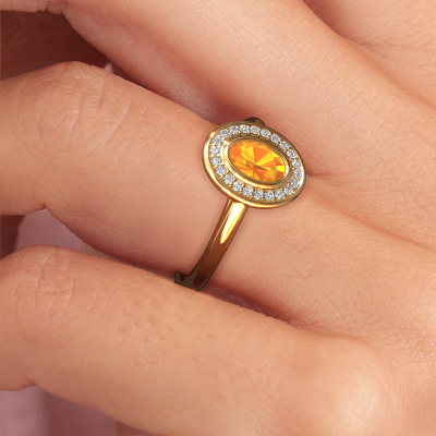 Der oben gezeigte Verlobungsring wird Noud 1 OVL genannt. Es ist ein Halo Ring, da er einen zentralen Edelstein und ein Band mit Pavé-Fassung hat. Der 14 Karat Gold ring ist mit einem 6x4 mm oval Citrin-Mittelstein besetzt und um ihn herum eine Pavé-Fassung mit Lab grown Diamant. Was diesen klassische, Gold Halo Ring besonders macht, sind die kleineren Steine, die den zentralen Stein umschließen. Dieser wunderschöne Verlobungsring wird als Halo Ring bezeichnet, da die kleineren Edelsteine dem zentralen Stein einen Lichthof geben. Damit die kleineren Steine den Mittelstein verstärken, müssen sie so platziert werden, dass keine Lichteinflüsse auftreten. Und hier kommen unsere erfahrenen Goldschmiede ins Spiel. Jeder einzelne Stein wird sorgfältig von Hand in den Ring gesetzt. Während der Herstellung wird der Lichteinfall ständig überprüft. So können wir sicherstellen, dass der spezielle Lichtkranz noch sichtbar ist. Am Ende erhalten Sie einen einzigartigen Verlobungsring mit einem Citrin Ihrer Wahl in der Mitte. Sie können sich die Wirkung eines solchen Ringes vorstellen, wenn Sie ihn an ihrem besonderen Tag für sie zum Leuchten bringen. Durch die Kombination modernster Technik mit uralter Handwerkskunst können wir alle Verlobungsringe in unserem eigenen Studio anfertigen. Jedes Schmuckstück wird auf Anfrage gefertigt. Das ist vorteilhaft, weil wir Ihnen dadurch einen Preis anbieten können, den Sie nirgendwo anders finden.Unser Team fügt unserer Online-Kollektion täglich neue Designs hinzu. Unsere Designer und Goldschmiede arbeiten zusammen, um das beste Design zu kreieren. Wir bemühen uns, eine vielfältige Kollektion von Schmuckstücken anzubieten. Vielleicht haben Sie ein bestimmtes Design im Sinn. Eines, dass Sie irgendwo gesehen haben. Gerne geben wir Ihnen eine kostenlose Beratung. Wir machen Ihnen ein Angebot, basierend auf einem fairen Preis/Leistungsverhältnis, das Sie verblüffen wird.Um es einfacher zu machen, bieten wir eine kostenlose 30-tägige Rücksendung.