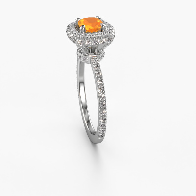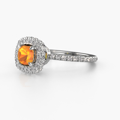 Der oben gezeigte Verlobungsring wird Talitha CUS genannt. Es ist ein Halo Ring, da er einen zentralen Edelstein und ein Band mit Pavé-Fassung hat. Der Platin ring ist mit einem 5 mm cussion Citrin-Mittelstein besetzt und um ihn herum eine Pavé-Fassung mit Diamanten. Was diesen traditionell, Platin Halo Ring besonders macht, sind die kleineren Steine, die den zentralen Stein umschließen. Dieser wunderschöne Verlobungsring wird als Halo Ring bezeichnet, da die kleineren Edelsteine dem zentralen Stein einen Lichthof geben. Damit die kleineren Steine den Mittelstein verstärken, müssen sie so platziert werden, dass keine Lichteinflüsse auftreten. Und hier kommen unsere erfahrenen Goldschmiede ins Spiel. Jeder einzelne Stein wird sorgfältig von Hand in den Ring gesetzt. Während der Herstellung wird der Lichteinfall ständig überprüft. So können wir sicherstellen, dass der spezielle Lichtkranz noch sichtbar ist. Am Ende erhalten Sie einen einzigartigen Verlobungsring mit einem Citrin Ihrer Wahl in der Mitte. Sie können sich die Wirkung eines solchen Ringes vorstellen, wenn Sie ihn an ihrem besonderen Tag für sie zum Leuchten bringen. Da wir unsere eigenen Ringe entwerfen und liefern, können wir Ihnen einen Verlobungsring zu einem Preis anbieten, den Sie nirgendwo anders finden. Ein Ring wird auf Bestellung angefertigt, wodurch kein überschüssiges Material anfällt. So können wir Ihnen ein gutes Angebot zum besten Preis machen. Wir verstehen, dass es sich riskant anfühlt, Ihren Verlobungsring online zu kaufen. Jedoch helfen wir Ihnen gerne beim Designprozess unter Berücksichtigung Ihres Budgets.Unsere Designer und Goldschmiede arbeiten jeden Tag zusammen und versuchen, neue Schmuckstücke zu kreieren. Vielleicht haben Sie irgendwo einen schönen, traditionell Verlobungsring gefunden, nach dem Ihr einzigartiger Ring gestaltet werden kann. Setzen Sie sich mit uns in Verbindung. Wir machen Ihnen ein Angebot, basierend auf einem fairen Preis/Leistungsverhältnis, das Sie begeistern wird.Um es einfacher zu machen, bieten wir eine kostenlose 30-tägige Rücksendung.
