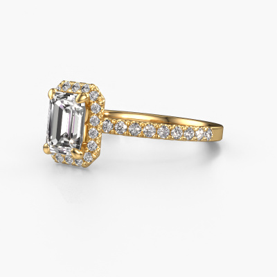 Der oben gezeigte Verlobungsring wird Miranda eme genannt. Es ist ein Halo Ring, da er einen zentralen Edelstein und ein Band mit Pavé-Fassung hat. Der 14 Karat Gold ring ist mit einem 1.15 crt smaragd schliff Diamant-Mittelstein besetzt und um ihn herum eine Pavé-Fassung mit Diamanten. Was diesen klassische, Gold Halo Ring besonders macht, sind die kleineren Steine, die den zentralen Stein umschließen. Dieser wunderschöne Verlobungsring wird als Halo Ring bezeichnet, da die kleineren Edelsteine dem zentralen Stein einen Lichthof geben. Damit die kleineren Steine den Mittelstein verstärken, müssen sie so platziert werden, dass keine Lichteinflüsse auftreten. Und hier kommen unsere erfahrenen Goldschmiede ins Spiel. Jeder einzelne Stein wird sorgfältig von Hand in den Ring gesetzt. Während der Herstellung wird der Lichteinfall ständig überprüft. So können wir sicherstellen, dass der spezielle Lichtkranz noch sichtbar ist. Am Ende erhalten Sie einen einzigartigen Verlobungsring mit einem Diamanten Ihrer Wahl in der Mitte. Sie können sich die Wirkung eines solchen Ringes vorstellen, wenn Sie ihn an ihrem besonderen Tag für sie zum Leuchten bringen. Durch die Kombination modernster Technik mit uralter Handwerkskunst können wir alle Verlobungsringe in unserem eigenen Studio anfertigen. Jedes Schmuckstück wird auf Anfrage gefertigt. Das ist vorteilhaft, weil wir Ihnen dadurch einen Preis anbieten können, den Sie nirgendwo anders finden.Unsere Designer und Goldschmiede arbeiten jeden Tag zusammen und versuchen, neue Schmuckstücke zu kreieren. Vielleicht haben Sie irgendwo einen schönen, klassische Verlobungsring gefunden, nach dem Ihr einzigartiger Ring gestaltet werden kann. Setzen Sie sich mit uns in Verbindung. Wir machen Ihnen ein Angebot, basierend auf einem fairen Preis/Leistungsverhältnis, das Sie begeistern wird.Um es einfacher zu machen, bieten wir eine kostenlose 30-tägige Rücksendung.