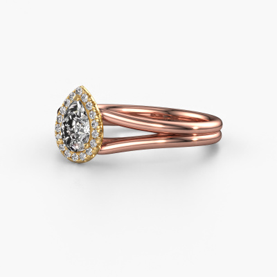 Dieser Ring aus 14 Karat Roségold heißt Verla pear 1 und hat 0.54 crt Diamant. Dieser zierliche 14 Karat Roségold Halo Verlobungsring ist ein wahres Kunstwerk! Die Ornamente werden mit viel Geduld und großer Leidenschaft gefertigt. Um diesen Ring mit großer Präzision zu schaffen, erfordert dieses Handwerk ein scharfes Auge und eine geschickte Hand. Eine Herausforderung, die bei unseren erfahrenen Juwelieren ein Feuer entfacht. Die exquisiten Diamanten sind auf eine besondere Art und Weise gefasst, so dass sie noch mehr hervorstechen. Dies verleiht dem Ring eine noch glamourösere Erscheinung. Der Ring an sich ist schon wegen der Edelsteine einzigartig, die wir speziell für diesen Ring auswählen. Obendrein wählen Sie die Edelmetalle aus, mit denen Ihr einzigartiger Ring für die außergewöhnlichste Frau Ihres Lebens gemacht wird! Jedes Schmuckstück lässt Ihren Finger erstrahlen. Ihr Ring ist mit Liebe von unseren Goldschmieden handgefertigt.Durch die Kombination modernster Technik mit uralter Handwerkskunst können wir alle Verlobungsringe in unserem eigenen Studio anfertigen. Jedes Schmuckstück wird auf Anfrage gefertigt. Das ist vorteilhaft, weil wir Ihnen dadurch einen Preis anbieten können, den Sie nirgendwo anders finden.Haben Sie irgendwo einen bestimmten Verlobungsring gefunden, den Sie Ihrem Liebsten schenken möchten? Sie können uns gerne sagen, was Sie wollen und wir werden Ihr Design in einen Einzigartigen Luxus Verlobungsring verwandeln. Sie können die Entwicklungen Ihres Ringdesigns verfolgen, da wir 3D-Zeichnungen verwenden. Das gibt Ihnen eine realistische Vorschau, wie Ihr Design aussehen wird. Sie können auch einen Dummy vorbestellen. Ein Dummy ist ein Kunststoffring, der nach Ihrem Ringdesign gestaltet werden kann. Sie können ihn anprobieren und prüfen, ob seine Breite und Größe für Sie geeignet sind. Wir senden Ihnen gerne ein unverbindliches Angebot zu einem fairen Preis/Leistungsverhältnis. Sie werden in Anbetracht der Qualität des Rings und der Edelsteine überrascht sein.Um es einfacher zu machen, bieten wir eine kostenlose 30-tägige Rücksendung.