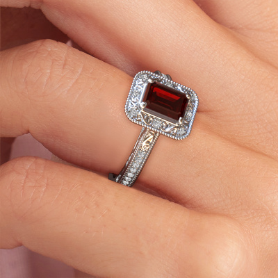 Dieser Verlobungsring aus Platin heißt Alice EME und hat einen 7x5 mm Granat. Ein außergewöhnlicher, Platin Vintage Ring. Einer, der die Liebe Ihres Lebens mit Sicherheit wie ein Granat erstrahlen lässt! Das hoffen wir zu erreichen. Dieser Vintage Verlobungsring ist mit exquisiten Granat besetzt. Welchen Edelstein Sie aus unserer Auswahl haben möchten, liegt ganz bei Ihnen. Der Edelstein wird mit großer Sorgfalt ausgewählt. Denn wir glauben, dass Ihr Perle Ränder Verlobungsring nur mit dem schönsten Edelstein gekrönt sein darf. Sehen Sie das auch so? Unser erfahrener Juwelier entwirft Ihren Ring in unserem eigenen Studio, wo der Granat mit großer Präzision eingefasst wird. Der Ring wird dann bearbeitet und poliert, bis er perfekt ist. Nichts als das Beste für die Liebe Ihres Lebens! Jedes Schmuckstück wird von unseren Meister-Goldschmieden in unserem eigenen Studio für Sie gefertigt.Durch die Kombination modernster Technik mit uralter Handwerkskunst können wir alle Verlobungsringe in unserem eigenen Studio anfertigen. Jedes Schmuckstück wird auf Anfrage gefertigt. Das ist vorteilhaft, weil wir Ihnen dadurch einen Preis anbieten können, den Sie nirgendwo anders finden.Haben Sie einen bestimmten Ring im Sinn? Eines, dass Sie irgendwo gesehen haben. Bitte zögern Sie nicht, uns zu sagen, was Sie wollen und wir werden Ihr Design in einen Einzigartigen Verlobungsring verwandeln. Sie können die Entwicklungen Ihres Ringdesigns verfolgen, da wir 3D-Zeichnungen verwenden. Das gibt Ihnen eine realistische Vorschau Ihres Designs. Wir senden Ihnen gerne ein unverbindliches Angebot zu einem fairen Preis/Leistungsverhältnis. Es wird Sie erstaunen.Um es einfacher zu machen, bieten wir eine kostenlose 30-tägige Rücksendung.