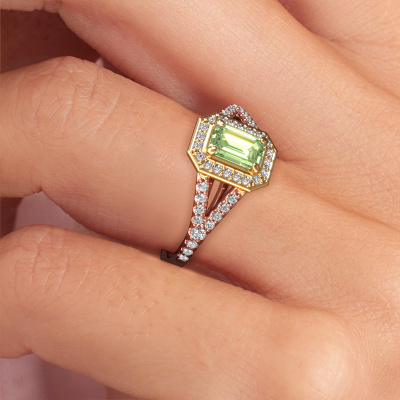 Dieser Ring aus 14 Karat Roségold heißt Pamela EME und hat 6x4 mm grüner Labor-Diamant. Dieser gespaltene Bänder 14 Karat Roségold Halo Verlobungsring ist ein wahres Kunstwerk! Die Ornamente werden mit viel Geduld und großer Leidenschaft gefertigt. Um diesen Ring mit großer Präzision zu schaffen, erfordert dieses Handwerk ein scharfes Auge und eine geschickte Hand. Eine Herausforderung, die bei unseren erfahrenen Juwelieren ein Feuer entfacht. Die exquisiten grüner Labor-Diamanten sind auf eine besondere Art und Weise gefasst, so dass sie noch mehr hervorstechen. Dies verleiht dem Ring eine noch glamourösere Erscheinung. Der Ring an sich ist schon wegen der Edelsteine einzigartig, die wir speziell für diesen Ring auswählen. Obendrein wählen Sie die Edelmetalle aus, mit denen Ihr einzigartiger Ring für die außergewöhnlichste Frau Ihres Lebens gemacht wird! Jedes Schmuckstück wird nur für Sie persönlich hergestellt, mit Liebe zum Detail und Design.Da wir unsere eigenen Ringe entwerfen und liefern, können wir Ihnen einen Verlobungsring zu einem Preis anbieten, den Sie nirgendwo anders finden. Ein Ring wird auf Bestellung angefertigt, wodurch kein überschüssiges Material anfällt. So können wir Ihnen ein gutes Angebot zum besten Preis machen. Wir verstehen, dass es sich riskant anfühlt, Ihren Verlobungsring online zu kaufen. Jedoch helfen wir Ihnen gerne beim Designprozess unter Berücksichtigung Ihres Budgets.Unser Team fügt unserer Online-Kollektion täglich neue Designs hinzu. Unsere Designer und Goldschmiede arbeiten zusammen, um das beste Design zu kreieren. Wir bemühen uns, eine vielfältige Kollektion von Schmuckstücken anzubieten. Vielleicht haben Sie ein bestimmtes Design im Sinn. Eines, dass Sie irgendwo gesehen haben. Gerne geben wir Ihnen eine kostenlose Beratung. Wir machen Ihnen ein Angebot, basierend auf einem fairen Preis/Leistungsverhältnis, das Sie verblüffen wird.Um es einfacher zu machen, bieten wir eine kostenlose 30-tägige Rücksendung.
