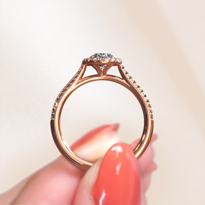 Der oben gezeigte Verlobungsring wird Seline ovl 2 genannt. Es ist ein Halo Ring, da er einen zentralen Edelstein und ein Band mit Pavé-Fassung hat. Der 14 Karat Roségold ring ist mit einem 0.70 crt oval Lab-grown Diamant-Mittelstein besetzt und um ihn herum eine Pavé-Fassung mit Diamanten. Was diesen exklusive, Roségold Halo Ring besonders macht, sind die kleineren Steine, die den zentralen Stein umschließen. Dieser wunderschöne Verlobungsring wird als Halo Ring bezeichnet, da die kleineren Edelsteine dem zentralen Stein einen Lichthof geben. Damit die kleineren Steine den Mittelstein verstärken, müssen sie so platziert werden, dass keine Lichteinflüsse auftreten. Und hier kommen unsere erfahrenen Goldschmiede ins Spiel. Jeder einzelne Stein wird sorgfältig von Hand in den Ring gesetzt. Während der Herstellung wird der Lichteinfall ständig überprüft. So können wir sicherstellen, dass der spezielle Lichtkranz noch sichtbar ist. Am Ende erhalten Sie einen einzigartigen Verlobungsring mit einem Lab grown Diamant Ihrer Wahl in der Mitte. Sie können sich die Wirkung eines solchen Ringes vorstellen, wenn Sie ihn an ihrem besonderen Tag für sie zum Leuchten bringen. Nachdem Sie Ihre Bestellung aufgegeben haben, beginnen unsere Goldschmiede mit dem kreativen Prozess der Herstellung Ihres Seline ovl 2 Verlobungsring. Wir haben keine Lager. Das ist vorteilhaft, da diese Kosten nicht an Sie weitergegeben werden. Daher sind wir in der Lage, Schmuck zu außergewöhnlich niedrigen Preisen anzubieten.Unser Team fügt unserer Online-Kollektion täglich neue Designs hinzu. Unsere Designer und Goldschmiede arbeiten zusammen, um das beste Design zu kreieren. Wir bemühen uns, eine vielfältige Kollektion von Schmuckstücken anzubieten. Vielleicht haben Sie ein bestimmtes Design im Sinn. Eines, dass Sie irgendwo gesehen haben. Gerne geben wir Ihnen eine kostenlose Beratung. Wir machen Ihnen ein Angebot, basierend auf einem fairen Preis/Leistungsverhältnis, das Sie verblüffen wird.Um es einfacher zu machen, bieten wir eine kostenlose 30-tägige Rücksendung.