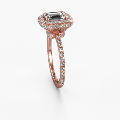 Der oben gezeigte Verlobungsring wird Talitha EME genannt. Es ist ein Halo Ring, da er einen zentralen Edelstein und ein Band mit Pavé-Fassung hat. Der 14 Karat Roségold ring ist mit einem 1.15 crt smaragd schliff Lab-grown Diamant-Mittelstein besetzt und um ihn herum eine Pavé-Fassung mit Lab grown Diamant. Was diesen Luxus, Roségold Halo Ring besonders macht, sind die kleineren Steine, die den zentralen Stein umschließen. Dieser wunderschöne Verlobungsring wird als Halo Ring bezeichnet, da die kleineren Edelsteine dem zentralen Stein einen Lichthof geben. Damit die kleineren Steine den Mittelstein verstärken, müssen sie so platziert werden, dass keine Lichteinflüsse auftreten. Und hier kommen unsere erfahrenen Goldschmiede ins Spiel. Jeder einzelne Stein wird sorgfältig von Hand in den Ring gesetzt. Während der Herstellung wird der Lichteinfall ständig überprüft. So können wir sicherstellen, dass der spezielle Lichtkranz noch sichtbar ist. Am Ende erhalten Sie einen einzigartigen Verlobungsring mit einem Lab grown Diamant Ihrer Wahl in der Mitte. Sie können sich die Wirkung eines solchen Ringes vorstellen, wenn Sie ihn an ihrem besonderen Tag für sie zum Leuchten bringen. Mit unserer modernen Technik können wir Schmuckstücke von höchster Qualität mit größter Sorgfalt für Sie entwerfen und anpassen. Unsere Verlobungsringe sind immer um 30 Prozent günstiger als bei anderen Juwelieren. Wir fertigen Verlobungsringe auf Bestellung, also müssen wir keine großen Lager unterhalten. Wenn Sie ein bestimmtes Budget haben, beraten wir Sie gerne entsprechend.Unser Team fügt unserer Online-Kollektion täglich neue Designs hinzu. Unsere Designer und Goldschmiede arbeiten zusammen, um das beste Design zu kreieren. Wir bemühen uns, eine vielfältige Kollektion von Schmuckstücken anzubieten. Vielleicht haben Sie ein bestimmtes Design im Sinn. Eines, dass Sie irgendwo gesehen haben. Gerne geben wir Ihnen eine kostenlose Beratung. Wir machen Ihnen ein Angebot, basierend auf einem fairen Preis/Leistungsverhältnis, das Sie verblüffen wird.Um es einfacher zu machen, bieten wir eine kostenlose 30-tägige Rücksendung.