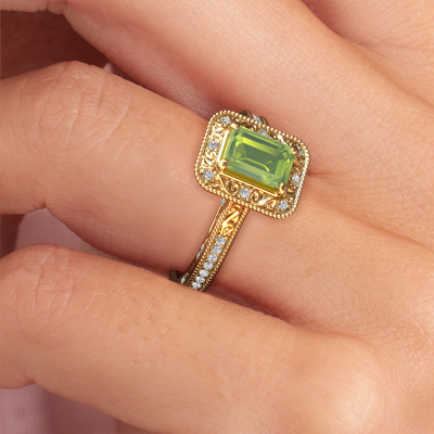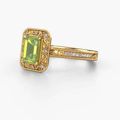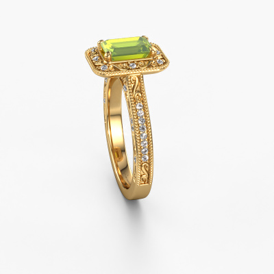 Dieser Verlobungsring aus 14 Karat Gold heißt Alice EME und hat einen 7x5 mm Peridot. Ein außergewöhnlicher, Gold Vintage Ring. Einer, der die Liebe Ihres Lebens mit Sicherheit wie ein Peridot erstrahlen lässt! Das hoffen wir zu erreichen. Dieser Vintage Verlobungsring ist mit exquisiten Peridot besetzt. Welchen Edelstein Sie aus unserer Auswahl haben möchten, liegt ganz bei Ihnen. Der Edelstein wird mit großer Sorgfalt ausgewählt. Denn wir glauben, dass Ihr Perle Ränder Verlobungsring nur mit dem schönsten Edelstein gekrönt sein darf. Sehen Sie das auch so? Unser erfahrener Juwelier entwirft Ihren Ring in unserem eigenen Studio, wo der Peridot mit großer Präzision eingefasst wird. Der Ring wird dann bearbeitet und poliert, bis er perfekt ist. Nichts als das Beste für die Liebe Ihres Lebens! Jedes Schmuckstück wird von unseren Meister-Goldschmieden in unserem eigenen Studio für Sie gefertigt.Durch die Kombination modernster Technik mit uralter Handwerkskunst können wir alle Verlobungsringe in unserem eigenen Studio anfertigen. Jedes Schmuckstück wird auf Anfrage gefertigt. Das ist vorteilhaft, weil wir Ihnen dadurch einen Preis anbieten können, den Sie nirgendwo anders finden.Haben Sie einen bestimmten Ring im Sinn? Eines, dass Sie irgendwo gesehen haben. Bitte zögern Sie nicht, uns zu sagen, was Sie wollen und wir werden Ihr Design in einen Einzigartigen Verlobungsring verwandeln. Sie können die Entwicklungen Ihres Ringdesigns verfolgen, da wir 3D-Zeichnungen verwenden. Das gibt Ihnen eine realistische Vorschau Ihres Designs. Wir senden Ihnen gerne ein unverbindliches Angebot zu einem fairen Preis/Leistungsverhältnis. Es wird Sie erstaunen.Um es einfacher zu machen, bieten wir eine kostenlose 30-tägige Rücksendung.