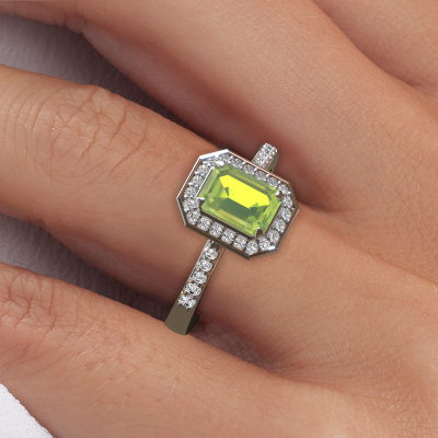 Dieser Ring aus Platin heißt Dodie 2 eme und hat 7x5 mm Peridot. Dieser schöne Platin Halo Verlobungsring ist ein wahres Kunstwerk! Die Ornamente werden mit viel Geduld und großer Leidenschaft gefertigt. Um diesen Ring mit großer Präzision zu schaffen, erfordert dieses Handwerk ein scharfes Auge und eine geschickte Hand. Eine Herausforderung, die bei unseren erfahrenen Juwelieren ein Feuer entfacht. Die exquisiten Peridot sind auf eine besondere Art und Weise gefasst, so dass sie noch mehr hervorstechen. Dies verleiht dem Ring eine noch glamourösere Erscheinung. Der Ring an sich ist schon wegen der Edelsteine einzigartig, die wir speziell für diesen Ring auswählen. Obendrein wählen Sie die Edelmetalle aus, mit denen Ihr einzigartiger Ring für die außergewöhnlichste Frau Ihres Lebens gemacht wird! Jedes Schmuckstück wird nur für Sie persönlich hergestellt, mit Liebe zum Detail und Design.Da wir unsere eigenen Ringe entwerfen und liefern, können wir Ihnen einen Verlobungsring zu einem Preis anbieten, den Sie nirgendwo anders finden. Ein Ring wird auf Bestellung angefertigt, wodurch kein überschüssiges Material anfällt. So können wir Ihnen ein gutes Angebot zum besten Preis machen. Wir verstehen, dass es sich riskant anfühlt, Ihren Verlobungsring online zu kaufen. Jedoch helfen wir Ihnen gerne beim Designprozess unter Berücksichtigung Ihres Budgets.Haben Sie einen bestimmten Ring im Sinn? Eines, dass Sie irgendwo gesehen haben. Bitte zögern Sie nicht, uns zu sagen, was Sie wollen und wir werden Ihr Design in einen Einzigartigen Verlobungsring verwandeln. Sie können die Entwicklungen Ihres Ringdesigns verfolgen, da wir 3D-Zeichnungen verwenden. Das gibt Ihnen eine realistische Vorschau Ihres Designs. Wir senden Ihnen gerne ein unverbindliches Angebot zu einem fairen Preis/Leistungsverhältnis. Es wird Sie erstaunen.Um es einfacher zu machen, bieten wir eine kostenlose 30-tägige Rücksendung.