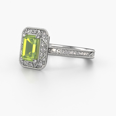 Dieser Verlobungsring aus Platin heißt Alice EME und hat einen 7x5 mm Peridot. Ein außergewöhnlicher, Platin Vintage Ring. Einer, der die Liebe Ihres Lebens mit Sicherheit wie ein Peridot erstrahlen lässt! Das hoffen wir zu erreichen. Dieser Vintage Verlobungsring ist mit exquisiten Peridot besetzt. Welchen Edelstein Sie aus unserer Auswahl haben möchten, liegt ganz bei Ihnen. Der Edelstein wird mit großer Sorgfalt ausgewählt. Denn wir glauben, dass Ihr Perle Ränder Verlobungsring nur mit dem schönsten Edelstein gekrönt sein darf. Sehen Sie das auch so? Unser erfahrener Juwelier entwirft Ihren Ring in unserem eigenen Studio, wo der Peridot mit großer Präzision eingefasst wird. Der Ring wird dann bearbeitet und poliert, bis er perfekt ist. Nichts als das Beste für die Liebe Ihres Lebens! Jedes Schmuckstück wird von unseren Meister-Goldschmieden in unserem eigenen Studio für Sie gefertigt.Durch die Kombination modernster Technik mit uralter Handwerkskunst können wir alle Verlobungsringe in unserem eigenen Studio anfertigen. Jedes Schmuckstück wird auf Anfrage gefertigt. Das ist vorteilhaft, weil wir Ihnen dadurch einen Preis anbieten können, den Sie nirgendwo anders finden.Haben Sie einen bestimmten Ring im Sinn? Eines, dass Sie irgendwo gesehen haben. Bitte zögern Sie nicht, uns zu sagen, was Sie wollen und wir werden Ihr Design in einen Einzigartigen Verlobungsring verwandeln. Sie können die Entwicklungen Ihres Ringdesigns verfolgen, da wir 3D-Zeichnungen verwenden. Das gibt Ihnen eine realistische Vorschau Ihres Designs. Wir senden Ihnen gerne ein unverbindliches Angebot zu einem fairen Preis/Leistungsverhältnis. Es wird Sie erstaunen.Um es einfacher zu machen, bieten wir eine kostenlose 30-tägige Rücksendung.