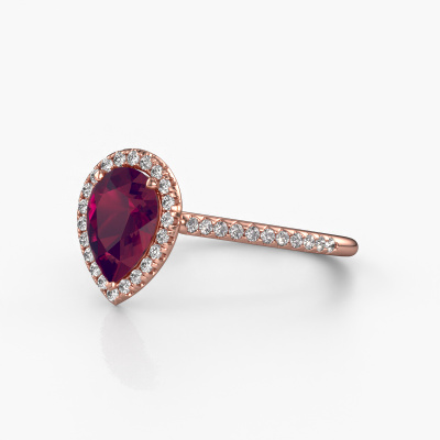 Der oben gezeigte Verlobungsring wird Seline per 2 genannt. Es ist ein Halo Ring, da er einen zentralen Edelstein und ein Band mit Pavé-Fassung hat. Der 14 Karat Roségold ring ist mit einem 8x6 mm tropfen Rhodolit-Mittelstein besetzt und um ihn herum eine Pavé-Fassung mit Diamanten. Was diesen klassische, Roségold Halo Ring besonders macht, sind die kleineren Steine, die den zentralen Stein umschließen. Dieser wunderschöne Verlobungsring wird als Halo Ring bezeichnet, da die kleineren Edelsteine dem zentralen Stein einen Lichthof geben. Damit die kleineren Steine den Mittelstein verstärken, müssen sie so platziert werden, dass keine Lichteinflüsse auftreten. Und hier kommen unsere erfahrenen Goldschmiede ins Spiel. Jeder einzelne Stein wird sorgfältig von Hand in den Ring gesetzt. Während der Herstellung wird der Lichteinfall ständig überprüft. So können wir sicherstellen, dass der spezielle Lichtkranz noch sichtbar ist. Am Ende erhalten Sie einen einzigartigen Verlobungsring mit einem Rhodolit Ihrer Wahl in der Mitte. Sie können sich die Wirkung eines solchen Ringes vorstellen, wenn Sie ihn an ihrem besonderen Tag für sie zum Leuchten bringen. Da wir unsere eigenen Ringe entwerfen und liefern, können wir Ihnen einen Verlobungsring zu einem Preis anbieten, den Sie nirgendwo anders finden. Ein Ring wird auf Bestellung angefertigt, wodurch kein überschüssiges Material anfällt. So können wir Ihnen ein gutes Angebot zum besten Preis machen. Wir verstehen, dass es sich riskant anfühlt, Ihren Verlobungsring online zu kaufen. Jedoch helfen wir Ihnen gerne beim Designprozess unter Berücksichtigung Ihres Budgets.Unsere Designer und Goldschmiede arbeiten jeden Tag zusammen und versuchen, neue Schmuckstücke zu kreieren. Vielleicht haben Sie irgendwo einen schönen, klassische Verlobungsring gefunden, nach dem Ihr einzigartiger Ring gestaltet werden kann. Setzen Sie sich mit uns in Verbindung. Wir machen Ihnen ein Angebot, basierend auf einem fairen Preis/Leistungsverhältnis, das Sie begeistern wird.Um es einfacher zu machen, bieten wir eine kostenlose 30-tägige Rücksendung.