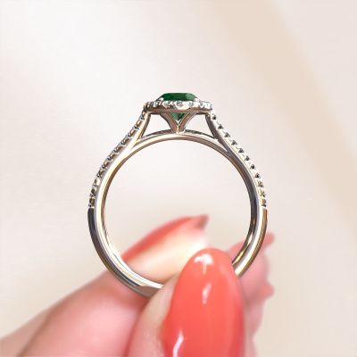 Der oben gezeigte Verlobungsring wird Seline ovl 2 genannt. Es ist ein Halo Ring, da er einen zentralen Edelstein und ein Band mit Pavé-Fassung hat. Der Platin ring ist mit einem 7x5 mm oval Smaragd-Mittelstein besetzt und um ihn herum eine Pavé-Fassung mit Diamanten. Was diesen exklusive, Platin Halo Ring besonders macht, sind die kleineren Steine, die den zentralen Stein umschließen. Dieser wunderschöne Verlobungsring wird als Halo Ring bezeichnet, da die kleineren Edelsteine dem zentralen Stein einen Lichthof geben. Damit die kleineren Steine den Mittelstein verstärken, müssen sie so platziert werden, dass keine Lichteinflüsse auftreten. Und hier kommen unsere erfahrenen Goldschmiede ins Spiel. Jeder einzelne Stein wird sorgfältig von Hand in den Ring gesetzt. Während der Herstellung wird der Lichteinfall ständig überprüft. So können wir sicherstellen, dass der spezielle Lichtkranz noch sichtbar ist. Am Ende erhalten Sie einen einzigartigen Verlobungsring mit einem Smaragd Ihrer Wahl in der Mitte. Sie können sich die Wirkung eines solchen Ringes vorstellen, wenn Sie ihn an ihrem besonderen Tag für sie zum Leuchten bringen. Nachdem Sie Ihre Bestellung aufgegeben haben, beginnen unsere Goldschmiede mit dem kreativen Prozess der Herstellung Ihres Seline ovl 2 Verlobungsring. Wir haben keine Lager. Das ist vorteilhaft, da diese Kosten nicht an Sie weitergegeben werden. Daher sind wir in der Lage, Schmuck zu außergewöhnlich niedrigen Preisen anzubieten.Unser Team fügt unserer Online-Kollektion täglich neue Designs hinzu. Unsere Designer und Goldschmiede arbeiten zusammen, um das beste Design zu kreieren. Wir bemühen uns, eine vielfältige Kollektion von Schmuckstücken anzubieten. Vielleicht haben Sie ein bestimmtes Design im Sinn. Eines, dass Sie irgendwo gesehen haben. Gerne geben wir Ihnen eine kostenlose Beratung. Wir machen Ihnen ein Angebot, basierend auf einem fairen Preis/Leistungsverhältnis, das Sie verblüffen wird.Um es einfacher zu machen, bieten wir eine kostenlose 30-tägige Rücksendung.