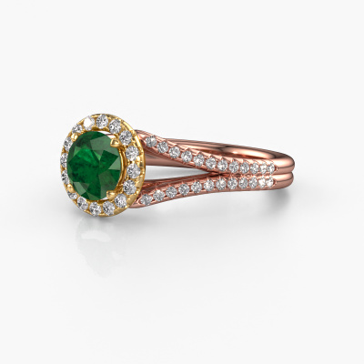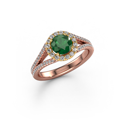 Dieser Ring aus 14 Karat Roségold heißt Verla rnd 2 und hat 6.5 mm Smaragd. Dieser gespaltene Bänder 14 Karat Roségold Halo Verlobungsring ist ein wahres Kunstwerk! Die Ornamente werden mit viel Geduld und großer Leidenschaft gefertigt. Um diesen Ring mit großer Präzision zu schaffen, erfordert dieses Handwerk ein scharfes Auge und eine geschickte Hand. Eine Herausforderung, die bei unseren erfahrenen Juwelieren ein Feuer entfacht. Die exquisiten Smaragd sind auf eine besondere Art und Weise gefasst, so dass sie noch mehr hervorstechen. Dies verleiht dem Ring eine noch glamourösere Erscheinung. Der Ring an sich ist schon wegen der Edelsteine einzigartig, die wir speziell für diesen Ring auswählen. Obendrein wählen Sie die Edelmetalle aus, mit denen Ihr einzigartiger Ring für die außergewöhnlichste Frau Ihres Lebens gemacht wird! Jedes Schmuckstück wird nur für Sie persönlich hergestellt, mit Liebe zum Detail und Design.Da wir unsere eigenen Ringe entwerfen und liefern, können wir Ihnen einen Verlobungsring zu einem Preis anbieten, den Sie nirgendwo anders finden. Ein Ring wird auf Bestellung angefertigt, wodurch kein überschüssiges Material anfällt. So können wir Ihnen ein gutes Angebot zum besten Preis machen. Wir verstehen, dass es sich riskant anfühlt, Ihren Verlobungsring online zu kaufen. Jedoch helfen wir Ihnen gerne beim Designprozess unter Berücksichtigung Ihres Budgets.Unser Team fügt unserer Online-Kollektion täglich neue Designs hinzu. Unsere Designer und Goldschmiede arbeiten zusammen, um das beste Design zu kreieren. Wir bemühen uns, eine vielfältige Kollektion von Schmuckstücken anzubieten. Vielleicht haben Sie ein bestimmtes Design im Sinn. Eines, dass Sie irgendwo gesehen haben. Gerne geben wir Ihnen eine kostenlose Beratung. Wir machen Ihnen ein Angebot, basierend auf einem fairen Preis/Leistungsverhältnis, das Sie verblüffen wird.Um es einfacher zu machen, bieten wir eine kostenlose 30-tägige Rücksendung.