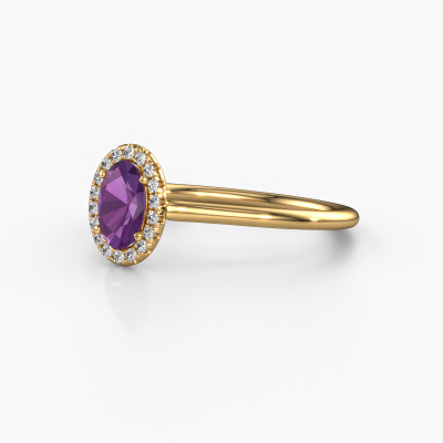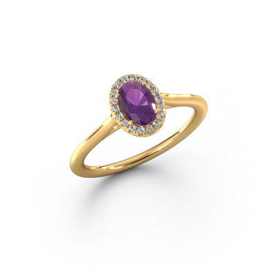 Der oben gezeigte Verlobungsring wird Seline ovl 1 genannt. Es ist ein Halo Ring, da er einen zentralen Edelstein und ein Band mit Pavé-Fassung hat. Der 14 Karat Gold ring ist mit einem 6x4 mm oval Amethyst-Mittelstein besetzt und um ihn herum eine Pavé-Fassung mit Diamanten. Was diesen klassische, Gold Halo Ring besonders macht, sind die kleineren Steine, die den zentralen Stein umschließen. Dieser wunderschöne Verlobungsring wird als Halo Ring bezeichnet, da die kleineren Edelsteine dem zentralen Stein einen Lichthof geben. Damit die kleineren Steine den Mittelstein verstärken, müssen sie so platziert werden, dass keine Lichteinflüsse auftreten. Und hier kommen unsere erfahrenen Goldschmiede ins Spiel. Jeder einzelne Stein wird sorgfältig von Hand in den Ring gesetzt. Während der Herstellung wird der Lichteinfall ständig überprüft. So können wir sicherstellen, dass der spezielle Lichtkranz noch sichtbar ist. Am Ende erhalten Sie einen einzigartigen Verlobungsring mit einem Amethysten Ihrer Wahl in der Mitte. Sie können sich die Wirkung eines solchen Ringes vorstellen, wenn Sie ihn an ihrem besonderen Tag für sie zum Leuchten bringen. Haben Sie ein bestimmtes Budget? Sie können uns gerne kontaktieren, damit wir Ihre Optionen besprechen können. Wir bieten unsere Verlobungsringe zum garantiert besten Preis, denn wir fertigen sie auf Bestellung. Solche Preise finden Sie nirgendwo anders!Unser Team fügt unserer Online-Kollektion täglich neue Designs hinzu. Unsere Designer und Goldschmiede arbeiten zusammen, um das beste Design zu kreieren. Wir bemühen uns, eine vielfältige Kollektion von Schmuckstücken anzubieten. Vielleicht haben Sie ein bestimmtes Design im Sinn. Eines, dass Sie irgendwo gesehen haben. Gerne geben wir Ihnen eine kostenlose Beratung. Wir machen Ihnen ein Angebot, basierend auf einem fairen Preis/Leistungsverhältnis, das Sie verblüffen wird.Um es einfacher zu machen, bieten wir eine kostenlose 30-tägige Rücksendung.