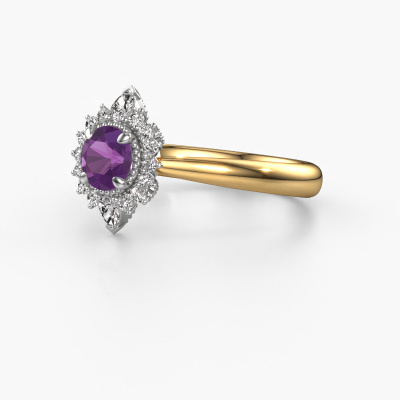 Dieser geschmackvolle Verlobungsring aus 14 Karat Gold heißt Susan und hat 5 mm Amethyst. Ist Ihre Freundin von Vintage begeistert? Dann wird dieser Gold Verlobungsring sicherlich perfekt zu ihrem Stil passen. Ein trendiger Ring mit einem Hauch von klassischem Schmuck. Ein wirklich atemberaubendes, romantisches Design! Vor allem, wenn Sie den Ring nach ihren Wünschen anpassen. Dieser Vintage Halo Verlobungsring ist mit atemberaubenden Amethysten besetzt. Wie Sie sehen können, sind Sie der Boss bei der Auswahl des Edelsteins, der am besten zu Ihrer Freundin passt. Jeder Edelstein wird sorgfältig von unseren Händlern ausgewählt, die auf der ganzen Welt verteilt sind. Nichts als die besten Edelsteine für unseren erfahrenen Juwelier! Schließlich ist es seine Krönung! Jedes Schmuckstück wird nur für Sie persönlich hergestellt, mit Liebe zum Detail und Design.Durch die Kombination modernster Technik mit uralter Handwerkskunst können wir alle Verlobungsringe in unserem eigenen Studio anfertigen. Jedes Schmuckstück wird auf Anfrage gefertigt. Das ist vorteilhaft, weil wir Ihnen dadurch einen Preis anbieten können, den Sie nirgendwo anders finden.Unser Team fügt unserer Online-Kollektion täglich neue Designs hinzu. Unsere Designer und Goldschmiede arbeiten zusammen, um das beste Design zu kreieren. Wir bemühen uns, eine vielfältige Kollektion von Schmuckstücken anzubieten. Vielleicht haben Sie ein bestimmtes Design im Sinn. Eines, dass Sie irgendwo gesehen haben. Gerne geben wir Ihnen eine kostenlose Beratung. Wir machen Ihnen ein Angebot, basierend auf einem fairen Preis/Leistungsverhältnis, das Sie verblüffen wird.Um es einfacher zu machen, bieten wir eine kostenlose 30-tägige Rücksendung.