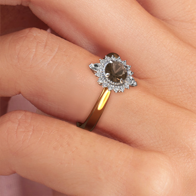Dieser geschmackvolle Verlobungsring aus 14 Karat Gold heißt Susan und hat 5 mm Rauchquarz. Ist Ihre Freundin von Vintage begeistert? Dann wird dieser Gold Verlobungsring sicherlich perfekt zu ihrem Stil passen. Ein trendiger Ring mit einem Hauch von klassischem Schmuck. Ein wirklich atemberaubendes, romantisches Design! Vor allem, wenn Sie den Ring nach ihren Wünschen anpassen. Dieser Vintage Halo Verlobungsring ist mit atemberaubenden Rauchquarz besetzt. Wie Sie sehen können, sind Sie der Boss bei der Auswahl des Edelsteins, der am besten zu Ihrer Freundin passt. Jeder Edelstein wird sorgfältig von unseren Händlern ausgewählt, die auf der ganzen Welt verteilt sind. Nichts als die besten Edelsteine für unseren erfahrenen Juwelier! Schließlich ist es seine Krönung! Jedes Schmuckstück wird nur für Sie persönlich hergestellt, mit Liebe zum Detail und Design.Durch die Kombination modernster Technik mit uralter Handwerkskunst können wir alle Verlobungsringe in unserem eigenen Studio anfertigen. Jedes Schmuckstück wird auf Anfrage gefertigt. Das ist vorteilhaft, weil wir Ihnen dadurch einen Preis anbieten können, den Sie nirgendwo anders finden.Unser Team fügt unserer Online-Kollektion täglich neue Designs hinzu. Unsere Designer und Goldschmiede arbeiten zusammen, um das beste Design zu kreieren. Wir bemühen uns, eine vielfältige Kollektion von Schmuckstücken anzubieten. Vielleicht haben Sie ein bestimmtes Design im Sinn. Eines, dass Sie irgendwo gesehen haben. Gerne geben wir Ihnen eine kostenlose Beratung. Wir machen Ihnen ein Angebot, basierend auf einem fairen Preis/Leistungsverhältnis, das Sie verblüffen wird.Um es einfacher zu machen, bieten wir eine kostenlose 30-tägige Rücksendung.