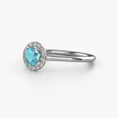 Der oben gezeigte Verlobungsring wird Seline rnd 1 genannt. Es ist ein Halo Ring, da er einen zentralen Edelstein und ein Band mit Pavé-Fassung hat. Der Platin ring ist mit einem 5 mm rund Blau Topas-Mittelstein besetzt und um ihn herum eine Pavé-Fassung mit Diamanten. Was diesen klassische, Platin Halo Ring besonders macht, sind die kleineren Steine, die den zentralen Stein umschließen. Dieser wunderschöne Verlobungsring wird als Halo Ring bezeichnet, da die kleineren Edelsteine dem zentralen Stein einen Lichthof geben. Damit die kleineren Steine den Mittelstein verstärken, müssen sie so platziert werden, dass keine Lichteinflüsse auftreten. Und hier kommen unsere erfahrenen Goldschmiede ins Spiel. Jeder einzelne Stein wird sorgfältig von Hand in den Ring gesetzt. Während der Herstellung wird der Lichteinfall ständig überprüft. So können wir sicherstellen, dass der spezielle Lichtkranz noch sichtbar ist. Am Ende erhalten Sie einen einzigartigen Verlobungsring mit einem Blaue Topas Ihrer Wahl in der Mitte. Sie können sich die Wirkung eines solchen Ringes vorstellen, wenn Sie ihn an ihrem besonderen Tag für sie zum Leuchten bringen. Mit unserer modernen Technik können wir Schmuckstücke von höchster Qualität mit größter Sorgfalt für Sie entwerfen und anpassen. Unsere Verlobungsringe sind immer um 30 Prozent günstiger als bei anderen Juwelieren. Wir fertigen Verlobungsringe auf Bestellung, also müssen wir keine großen Lager unterhalten. Wenn Sie ein bestimmtes Budget haben, beraten wir Sie gerne entsprechend.Verschiedene Arten von neuen Ringen werden täglich von unserem Team angefertigt. Vielleicht haben Sie irgendwo einen Halo Verlobungsring gefunden. Einen, den Sie Ihrem Liebsten schenken möchten. Bitte zögern Sie nicht, unseren Schmuckdesignern Ihre Gedanken und Ihr Design zu zeigen. Wir würden gerne Ihr Design in einen klassische Verlobungsring verwandeln. Sie können die Entwicklungen Ihres Ringdesigns verfolgen, da wir sehr detaillierte 3D-Zeichnungen verwenden. Darüber hinaus können Sie einen Dummy des Designs bestellen. Ein Dummy ist ein Kunststoffring, der nach Ihrem Ringdesign gestaltet werden kann. Sie können ihn anprobieren und prüfen, ob der Verlobungsring Ihren Vorstellungen entspricht. Wir senden Ihnen gerne ein unverbindliches Angebot zu einem fairen Preis/Leistungsverhältnis. Das Angebot wird Sie angesichts der Qualität des Rings und der Edelsteine verblüffen.Um es einfacher zu machen, bieten wir eine kostenlose 30-tägige Rücksendung.