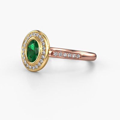 Der oben gezeigte Verlobungsring wird Noud 2 OVL genannt. Es ist ein Halo Ring, da er einen zentralen Edelstein und ein Band mit Pavé-Fassung hat. Der 14 Karat Roségold ring ist mit einem 6x4 mm oval Smaragd-Mittelstein besetzt und um ihn herum eine Pavé-Fassung mit Lab grown Diamant. Was diesen exklusive, Roségold Halo Ring besonders macht, sind die kleineren Steine, die den zentralen Stein umschließen. Dieser wunderschöne Verlobungsring wird als Halo Ring bezeichnet, da die kleineren Edelsteine dem zentralen Stein einen Lichthof geben. Damit die kleineren Steine den Mittelstein verstärken, müssen sie so platziert werden, dass keine Lichteinflüsse auftreten. Und hier kommen unsere erfahrenen Goldschmiede ins Spiel. Jeder einzelne Stein wird sorgfältig von Hand in den Ring gesetzt. Während der Herstellung wird der Lichteinfall ständig überprüft. So können wir sicherstellen, dass der spezielle Lichtkranz noch sichtbar ist. Am Ende erhalten Sie einen einzigartigen Verlobungsring mit einem Smaragd Ihrer Wahl in der Mitte. Sie können sich die Wirkung eines solchen Ringes vorstellen, wenn Sie ihn an ihrem besonderen Tag für sie zum Leuchten bringen. Mit unserer modernen Technik können wir Schmuckstücke von höchster Qualität mit größter Sorgfalt für Sie entwerfen und anpassen. Unsere Verlobungsringe sind immer um 30 Prozent günstiger als bei anderen Juwelieren. Wir fertigen Verlobungsringe auf Bestellung, also müssen wir keine großen Lager unterhalten. Wenn Sie ein bestimmtes Budget haben, beraten wir Sie gerne entsprechend.Haben Sie irgendwo einen bestimmten Verlobungsring gefunden, den Sie Ihrem Liebsten schenken möchten? Sie können uns gerne sagen, was Sie wollen und wir werden Ihr Design in einen Einzigartigen exklusive Verlobungsring verwandeln. Sie können die Entwicklungen Ihres Ringdesigns verfolgen, da wir 3D-Zeichnungen verwenden. Das gibt Ihnen eine realistische Vorschau, wie Ihr Design aussehen wird. Sie können auch einen Dummy vorbestellen. Ein Dummy ist ein Kunststoffring, der nach Ihrem Ringdesign gestaltet werden kann. Sie können ihn anprobieren und prüfen, ob seine Breite und Größe für Sie geeignet sind. Wir senden Ihnen gerne ein unverbindliches Angebot zu einem fairen Preis/Leistungsverhältnis. Sie werden in Anbetracht der Qualität des Rings und der Edelsteine überrascht sein.Um es einfacher zu machen, bieten wir eine kostenlose 30-tägige Rücksendung.