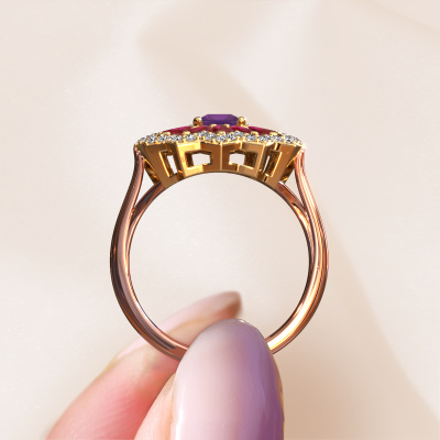 Dieser gewagte Verlobungsring aus 14 Karat Roségold heißt Franka und hat 4 mm Amethyst. Ist Ihre Freundin von Vintage begeistert? Dann wird dieser Roségold Verlobungsring sicherlich perfekt zu ihrem Stil passen. Ein trendiger Ring mit einem Hauch von klassischem Schmuck. Ein wirklich atemberaubendes, romantisches Design! Vor allem, wenn Sie den Ring nach ihren Wünschen anpassen. Dieser Vintage Halo Verlobungsring ist mit atemberaubenden Amethysten besetzt. Wie Sie sehen können, sind Sie der Boss bei der Auswahl des Edelsteins, der am besten zu Ihrer Freundin passt. Jeder Edelstein wird sorgfältig von unseren Händlern ausgewählt, die auf der ganzen Welt verteilt sind. Nichts als die besten Edelsteine für unseren erfahrenen Juwelier! Schließlich ist es seine Krönung! Jedes Schmuckstück wird von unseren Meister-Goldschmieden in unserem eigenen Studio für Sie gefertigt.Durch die Kombination modernster Technik mit uralter Handwerkskunst können wir alle Verlobungsringe in unserem eigenen Studio anfertigen. Jedes Schmuckstück wird auf Anfrage gefertigt. Das ist vorteilhaft, weil wir Ihnen dadurch einen Preis anbieten können, den Sie nirgendwo anders finden.Unsere Designer und Goldschmiede arbeiten jeden Tag zusammen und versuchen, neue Schmuckstücke zu kreieren. Vielleicht haben Sie irgendwo einen schönen, Vintage Verlobungsring gefunden, nach dem Ihr einzigartiger Ring gestaltet werden kann. Setzen Sie sich mit uns in Verbindung. Wir machen Ihnen ein Angebot, basierend auf einem fairen Preis/Leistungsverhältnis, das Sie begeistern wird.Um es einfacher zu machen, bieten wir eine kostenlose 30-tägige Rücksendung.