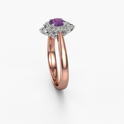 Dieser geschmackvolle Verlobungsring aus 14 Karat Roségold heißt Susan und hat 5 mm Amethyst. Ist Ihre Freundin von Vintage begeistert? Dann wird dieser Roségold Verlobungsring sicherlich perfekt zu ihrem Stil passen. Ein trendiger Ring mit einem Hauch von klassischem Schmuck. Ein wirklich atemberaubendes, romantisches Design! Vor allem, wenn Sie den Ring nach ihren Wünschen anpassen. Dieser Vintage Halo Verlobungsring ist mit atemberaubenden Amethysten besetzt. Wie Sie sehen können, sind Sie der Boss bei der Auswahl des Edelsteins, der am besten zu Ihrer Freundin passt. Jeder Edelstein wird sorgfältig von unseren Händlern ausgewählt, die auf der ganzen Welt verteilt sind. Nichts als die besten Edelsteine für unseren erfahrenen Juwelier! Schließlich ist es seine Krönung! Jedes Schmuckstück wird nur für Sie persönlich hergestellt, mit Liebe zum Detail und Design.Durch die Kombination modernster Technik mit uralter Handwerkskunst können wir alle Verlobungsringe in unserem eigenen Studio anfertigen. Jedes Schmuckstück wird auf Anfrage gefertigt. Das ist vorteilhaft, weil wir Ihnen dadurch einen Preis anbieten können, den Sie nirgendwo anders finden.Unser Team fügt unserer Online-Kollektion täglich neue Designs hinzu. Unsere Designer und Goldschmiede arbeiten zusammen, um das beste Design zu kreieren. Wir bemühen uns, eine vielfältige Kollektion von Schmuckstücken anzubieten. Vielleicht haben Sie ein bestimmtes Design im Sinn. Eines, dass Sie irgendwo gesehen haben. Gerne geben wir Ihnen eine kostenlose Beratung. Wir machen Ihnen ein Angebot, basierend auf einem fairen Preis/Leistungsverhältnis, das Sie verblüffen wird.Um es einfacher zu machen, bieten wir eine kostenlose 30-tägige Rücksendung.