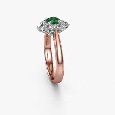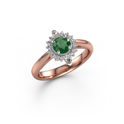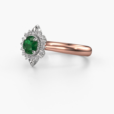 Dieser geschmackvolle Verlobungsring aus 14 Karat Roségold heißt Susan und hat 5 mm Smaragd. Ist Ihre Freundin von Vintage begeistert? Dann wird dieser Roségold Verlobungsring sicherlich perfekt zu ihrem Stil passen. Ein trendiger Ring mit einem Hauch von klassischem Schmuck. Ein wirklich atemberaubendes, romantisches Design! Vor allem, wenn Sie den Ring nach ihren Wünschen anpassen. Dieser Vintage Halo Verlobungsring ist mit atemberaubenden Smaragd besetzt. Wie Sie sehen können, sind Sie der Boss bei der Auswahl des Edelsteins, der am besten zu Ihrer Freundin passt. Jeder Edelstein wird sorgfältig von unseren Händlern ausgewählt, die auf der ganzen Welt verteilt sind. Nichts als die besten Edelsteine für unseren erfahrenen Juwelier! Schließlich ist es seine Krönung! Jedes Schmuckstück wird nur für Sie persönlich hergestellt, mit Liebe zum Detail und Design.Durch die Kombination modernster Technik mit uralter Handwerkskunst können wir alle Verlobungsringe in unserem eigenen Studio anfertigen. Jedes Schmuckstück wird auf Anfrage gefertigt. Das ist vorteilhaft, weil wir Ihnen dadurch einen Preis anbieten können, den Sie nirgendwo anders finden.Unser Team fügt unserer Online-Kollektion täglich neue Designs hinzu. Unsere Designer und Goldschmiede arbeiten zusammen, um das beste Design zu kreieren. Wir bemühen uns, eine vielfältige Kollektion von Schmuckstücken anzubieten. Vielleicht haben Sie ein bestimmtes Design im Sinn. Eines, dass Sie irgendwo gesehen haben. Gerne geben wir Ihnen eine kostenlose Beratung. Wir machen Ihnen ein Angebot, basierend auf einem fairen Preis/Leistungsverhältnis, das Sie verblüffen wird.Um es einfacher zu machen, bieten wir eine kostenlose 30-tägige Rücksendung.