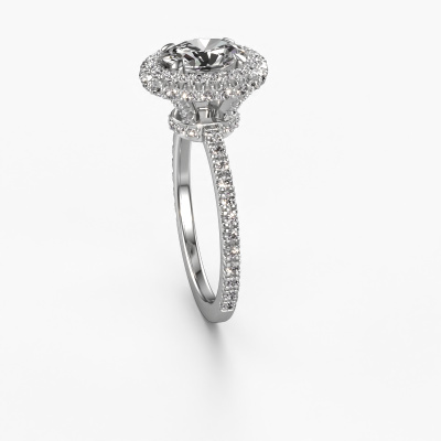 Der oben gezeigte Verlobungsring wird Talitha OVL genannt. Es ist ein Halo Ring, da er einen zentralen Edelstein und ein Band mit Pavé-Fassung hat. Der 14 Karat Weißgold ring ist mit einem 0.70 crt oval Lab-grown Diamant-Mittelstein besetzt und um ihn herum eine Pavé-Fassung mit Lab grown Diamant. Was diesen klassische, Weißgold Halo Ring besonders macht, sind die kleineren Steine, die den zentralen Stein umschließen. Dieser wunderschöne Verlobungsring wird als Halo Ring bezeichnet, da die kleineren Edelsteine dem zentralen Stein einen Lichthof geben. Damit die kleineren Steine den Mittelstein verstärken, müssen sie so platziert werden, dass keine Lichteinflüsse auftreten. Und hier kommen unsere erfahrenen Goldschmiede ins Spiel. Jeder einzelne Stein wird sorgfältig von Hand in den Ring gesetzt. Während der Herstellung wird der Lichteinfall ständig überprüft. So können wir sicherstellen, dass der spezielle Lichtkranz noch sichtbar ist. Am Ende erhalten Sie einen einzigartigen Verlobungsring mit einem Lab grown Diamant Ihrer Wahl in der Mitte. Sie können sich die Wirkung eines solchen Ringes vorstellen, wenn Sie ihn an ihrem besonderen Tag für sie zum Leuchten bringen. Durch die Kombination modernster Technik mit uralter Handwerkskunst können wir alle Verlobungsringe in unserem eigenen Studio anfertigen. Jedes Schmuckstück wird auf Anfrage gefertigt. Das ist vorteilhaft, weil wir Ihnen dadurch einen Preis anbieten können, den Sie nirgendwo anders finden.Unsere Designer und Goldschmiede arbeiten jeden Tag zusammen und versuchen, neue Schmuckstücke zu kreieren. Vielleicht haben Sie irgendwo einen schönen, klassische Verlobungsring gefunden, nach dem Ihr einzigartiger Ring gestaltet werden kann. Setzen Sie sich mit uns in Verbindung. Wir machen Ihnen ein Angebot, basierend auf einem fairen Preis/Leistungsverhältnis, das Sie begeistern wird.Um es einfacher zu machen, bieten wir eine kostenlose 30-tägige Rücksendung.