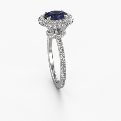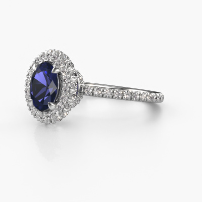Der oben gezeigte Verlobungsring wird Talitha OVL genannt. Es ist ein Halo Ring, da er einen zentralen Edelstein und ein Band mit Pavé-Fassung hat. Der 14 Karat Weißgold ring ist mit einem 7x5 mm oval Saphir-Mittelstein besetzt und um ihn herum eine Pavé-Fassung mit Lab grown Diamant. Was diesen klassische, Weißgold Halo Ring besonders macht, sind die kleineren Steine, die den zentralen Stein umschließen. Dieser wunderschöne Verlobungsring wird als Halo Ring bezeichnet, da die kleineren Edelsteine dem zentralen Stein einen Lichthof geben. Damit die kleineren Steine den Mittelstein verstärken, müssen sie so platziert werden, dass keine Lichteinflüsse auftreten. Und hier kommen unsere erfahrenen Goldschmiede ins Spiel. Jeder einzelne Stein wird sorgfältig von Hand in den Ring gesetzt. Während der Herstellung wird der Lichteinfall ständig überprüft. So können wir sicherstellen, dass der spezielle Lichtkranz noch sichtbar ist. Am Ende erhalten Sie einen einzigartigen Verlobungsring mit einem Saphir Ihrer Wahl in der Mitte. Sie können sich die Wirkung eines solchen Ringes vorstellen, wenn Sie ihn an ihrem besonderen Tag für sie zum Leuchten bringen. Durch die Kombination modernster Technik mit uralter Handwerkskunst können wir alle Verlobungsringe in unserem eigenen Studio anfertigen. Jedes Schmuckstück wird auf Anfrage gefertigt. Das ist vorteilhaft, weil wir Ihnen dadurch einen Preis anbieten können, den Sie nirgendwo anders finden.Unsere Designer und Goldschmiede arbeiten jeden Tag zusammen und versuchen, neue Schmuckstücke zu kreieren. Vielleicht haben Sie irgendwo einen schönen, klassische Verlobungsring gefunden, nach dem Ihr einzigartiger Ring gestaltet werden kann. Setzen Sie sich mit uns in Verbindung. Wir machen Ihnen ein Angebot, basierend auf einem fairen Preis/Leistungsverhältnis, das Sie begeistern wird.Um es einfacher zu machen, bieten wir eine kostenlose 30-tägige Rücksendung.