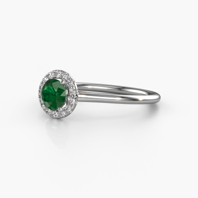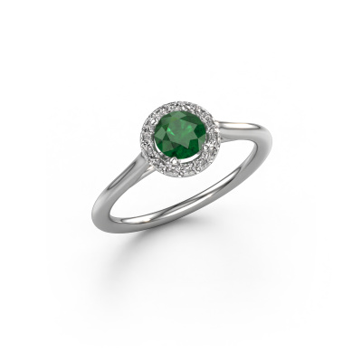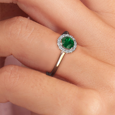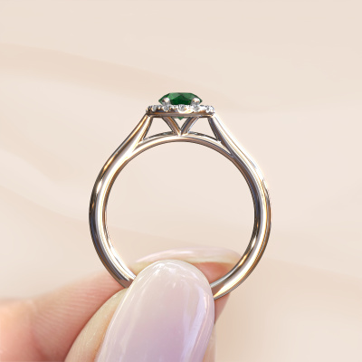 Der oben gezeigte Verlobungsring wird Seline rnd 1 genannt. Es ist ein Halo Ring, da er einen zentralen Edelstein und ein Band mit Pavé-Fassung hat. Der 14 Karat Weißgold ring ist mit einem 5 mm rund Smaragd-Mittelstein besetzt und um ihn herum eine Pavé-Fassung mit Diamanten. Was diesen klassische, Weißgold Halo Ring besonders macht, sind die kleineren Steine, die den zentralen Stein umschließen. Dieser wunderschöne Verlobungsring wird als Halo Ring bezeichnet, da die kleineren Edelsteine dem zentralen Stein einen Lichthof geben. Damit die kleineren Steine den Mittelstein verstärken, müssen sie so platziert werden, dass keine Lichteinflüsse auftreten. Und hier kommen unsere erfahrenen Goldschmiede ins Spiel. Jeder einzelne Stein wird sorgfältig von Hand in den Ring gesetzt. Während der Herstellung wird der Lichteinfall ständig überprüft. So können wir sicherstellen, dass der spezielle Lichtkranz noch sichtbar ist. Am Ende erhalten Sie einen einzigartigen Verlobungsring mit einem Smaragd Ihrer Wahl in der Mitte. Sie können sich die Wirkung eines solchen Ringes vorstellen, wenn Sie ihn an ihrem besonderen Tag für sie zum Leuchten bringen. Mit unserer modernen Technik können wir Schmuckstücke von höchster Qualität mit größter Sorgfalt für Sie entwerfen und anpassen. Unsere Verlobungsringe sind immer um 30 Prozent günstiger als bei anderen Juwelieren. Wir fertigen Verlobungsringe auf Bestellung, also müssen wir keine großen Lager unterhalten. Wenn Sie ein bestimmtes Budget haben, beraten wir Sie gerne entsprechend.Verschiedene Arten von neuen Ringen werden täglich von unserem Team angefertigt. Vielleicht haben Sie irgendwo einen Halo Verlobungsring gefunden. Einen, den Sie Ihrem Liebsten schenken möchten. Bitte zögern Sie nicht, unseren Schmuckdesignern Ihre Gedanken und Ihr Design zu zeigen. Wir würden gerne Ihr Design in einen klassische Verlobungsring verwandeln. Sie können die Entwicklungen Ihres Ringdesigns verfolgen, da wir sehr detaillierte 3D-Zeichnungen verwenden. Darüber hinaus können Sie einen Dummy des Designs bestellen. Ein Dummy ist ein Kunststoffring, der nach Ihrem Ringdesign gestaltet werden kann. Sie können ihn anprobieren und prüfen, ob der Verlobungsring Ihren Vorstellungen entspricht. Wir senden Ihnen gerne ein unverbindliches Angebot zu einem fairen Preis/Leistungsverhältnis. Das Angebot wird Sie angesichts der Qualität des Rings und der Edelsteine verblüffen.Um es einfacher zu machen, bieten wir eine kostenlose 30-tägige Rücksendung.