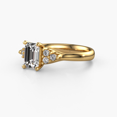 Der oben gezeigte Verlobungsring wird Monika EME genannt. Wir nennen das einen Solitär-Ring, denn er hat einen einzelnen Edelstein. Es ist ein 14 Karat Gold Verlobungsring, mit 1.15 crt smaragd schliff Diamant. Dieser außergewöhnliche, klassische Gold Solitär-Verlobungsring mit einem schönen, smaragd schliff Diamant soll Ihrem Antrag ein Funkeln geben. Die offenen Krappen ermöglichen, dass Licht aus mehr Winkeln auf den Edelstein trifft. Wussten Sie, dass ein Diamant für ewige Liebe und Treue steht? Das macht ihn zum perfekten Mittelstück. Unsere Goldschmiede positioniert den Edelstein Ihrer Wahl sorgfältig oben auf dem Ring. Dadurch sticht er hervor. Jedes Schmuckstück wird von unseren Meister-Goldschmieden in unserem eigenen Studio für Sie gefertigt.Mit unserer modernen Technik können wir Schmuckstücke von höchster Qualität mit größter Sorgfalt für Sie entwerfen und anpassen. Unsere Verlobungsringe sind immer um 30 Prozent günstiger als bei anderen Juwelieren. Wir fertigen Verlobungsringe auf Bestellung, also müssen wir keine großen Lager unterhalten. Wenn Sie ein bestimmtes Budget haben, beraten wir Sie gerne entsprechend.Unser Team fügt unserer Online-Kollektion täglich neue Designs hinzu. Unsere Designer und Goldschmiede arbeiten zusammen, um das beste Design zu kreieren. Wir bemühen uns, eine vielfältige Kollektion von Schmuckstücken anzubieten. Vielleicht haben Sie ein bestimmtes Design im Sinn. Eines, dass Sie irgendwo gesehen haben. Gerne geben wir Ihnen eine kostenlose Beratung. Wir machen Ihnen ein Angebot, basierend auf einem fairen Preis/Leistungsverhältnis, das Sie verblüffen wird.Um es einfacher zu machen, bieten wir eine kostenlose 30-tägige Rücksendung.