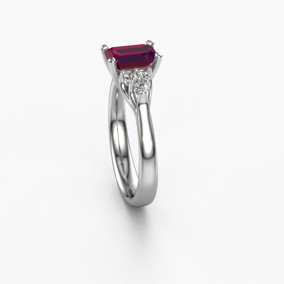 Der oben gezeigte Verlobungsring wird Monika EME genannt. Wir nennen das einen Solitär-Ring, denn er hat einen einzelnen Edelstein. Es ist ein Platin Verlobungsring, mit 7x5 mm smaragd schliff Rhodolit. Dieser außergewöhnliche, klassische Platin Solitär-Verlobungsring mit einem schönen, smaragd schliff Rhodolit soll Ihrem Antrag ein Funkeln geben. Die offenen Krappen ermöglichen, dass Licht aus mehr Winkeln auf den Edelstein trifft. Wussten Sie, dass ein Rhodolit für ewige Liebe und Treue steht? Das macht ihn zum perfekten Mittelstück. Unsere Goldschmiede positioniert den Edelstein Ihrer Wahl sorgfältig oben auf dem Ring. Dadurch sticht er hervor. Jedes Schmuckstück wird von unseren Meister-Goldschmieden in unserem eigenen Studio für Sie gefertigt.Mit unserer modernen Technik können wir Schmuckstücke von höchster Qualität mit größter Sorgfalt für Sie entwerfen und anpassen. Unsere Verlobungsringe sind immer um 30 Prozent günstiger als bei anderen Juwelieren. Wir fertigen Verlobungsringe auf Bestellung, also müssen wir keine großen Lager unterhalten. Wenn Sie ein bestimmtes Budget haben, beraten wir Sie gerne entsprechend.Unser Team fügt unserer Online-Kollektion täglich neue Designs hinzu. Unsere Designer und Goldschmiede arbeiten zusammen, um das beste Design zu kreieren. Wir bemühen uns, eine vielfältige Kollektion von Schmuckstücken anzubieten. Vielleicht haben Sie ein bestimmtes Design im Sinn. Eines, dass Sie irgendwo gesehen haben. Gerne geben wir Ihnen eine kostenlose Beratung. Wir machen Ihnen ein Angebot, basierend auf einem fairen Preis/Leistungsverhältnis, das Sie verblüffen wird.Um es einfacher zu machen, bieten wir eine kostenlose 30-tägige Rücksendung.