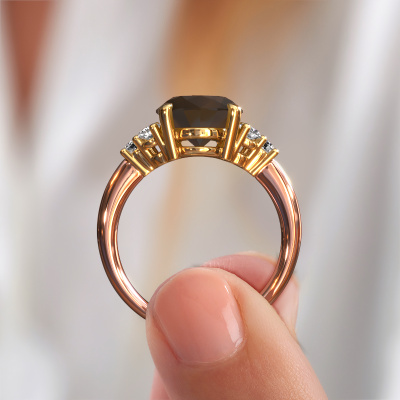 Dieser Verlobungsring aus 14 Karat Roségold heißt Aleida OVL 1. Sind Sie auf der Suche nach einem klassische, Roségold Verlobungsring mit Rauchquarz 9x7 mm, den Sie nach Ihren Wünschen gestalten können? Dieser klassische Verlobungsring ist mit Rauchquarz besetzt, der sorgfältig für diesen speziellen Ring ausgewählt wurde, um den besten Effekt zu erzielen. Unser erfahrener Juwelier kreiert Ihren Ring in unserem eigenen Studio eine Etage tiefer, wo der Rauchquarz mit großer Sorgfalt eingefasst wird. Der Ring wird dann bearbeitet und poliert, bis er perfekt ist. Nichts als das Beste für die Liebe Ihres Lebens! Das Besondere an unserem Konfigurator ist dass Sie selbst einem Schmuckstück zusammenstellen können zu einem eigenen persönlichen Schmuckstück. Jedes Schmuckstück ist um Ihrem Finger Glanz zu verleihen. Jeder Ring wird von unseren Goldschmieden liebevoll von Hand gefertigt.. Haben Sie ein bestimmtes Budget? Sie können uns gerne kontaktieren, damit wir Ihre Optionen besprechen können. Wir bieten unsere Verlobungsringe zum garantiert besten Preis, denn wir fertigen sie auf Bestellung. Solche Preise finden Sie nirgendwo anders!Unser Team fügt unserer Online-Kollektion täglich neue Designs hinzu. Unsere Designer und Goldschmiede arbeiten zusammen, um das beste Design zu kreieren. Wir bemühen uns, eine vielfältige Kollektion von Schmuckstücken anzubieten. Vielleicht haben Sie ein bestimmtes Design im Sinn. Eines, dass Sie irgendwo gesehen haben. Gerne geben wir Ihnen eine kostenlose Beratung. Wir machen Ihnen ein Angebot, basierend auf einem fairen Preis/Leistungsverhältnis, das Sie verblüffen wird.Um es einfacher zu machen, bieten wir eine kostenlose 30-tägige Rücksendung.